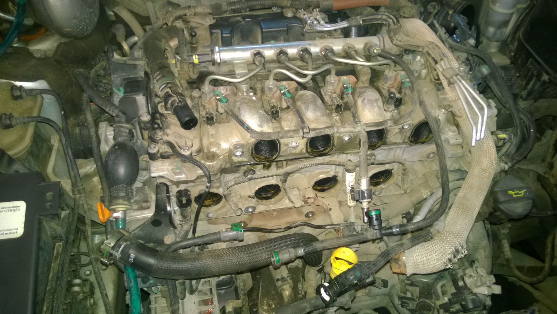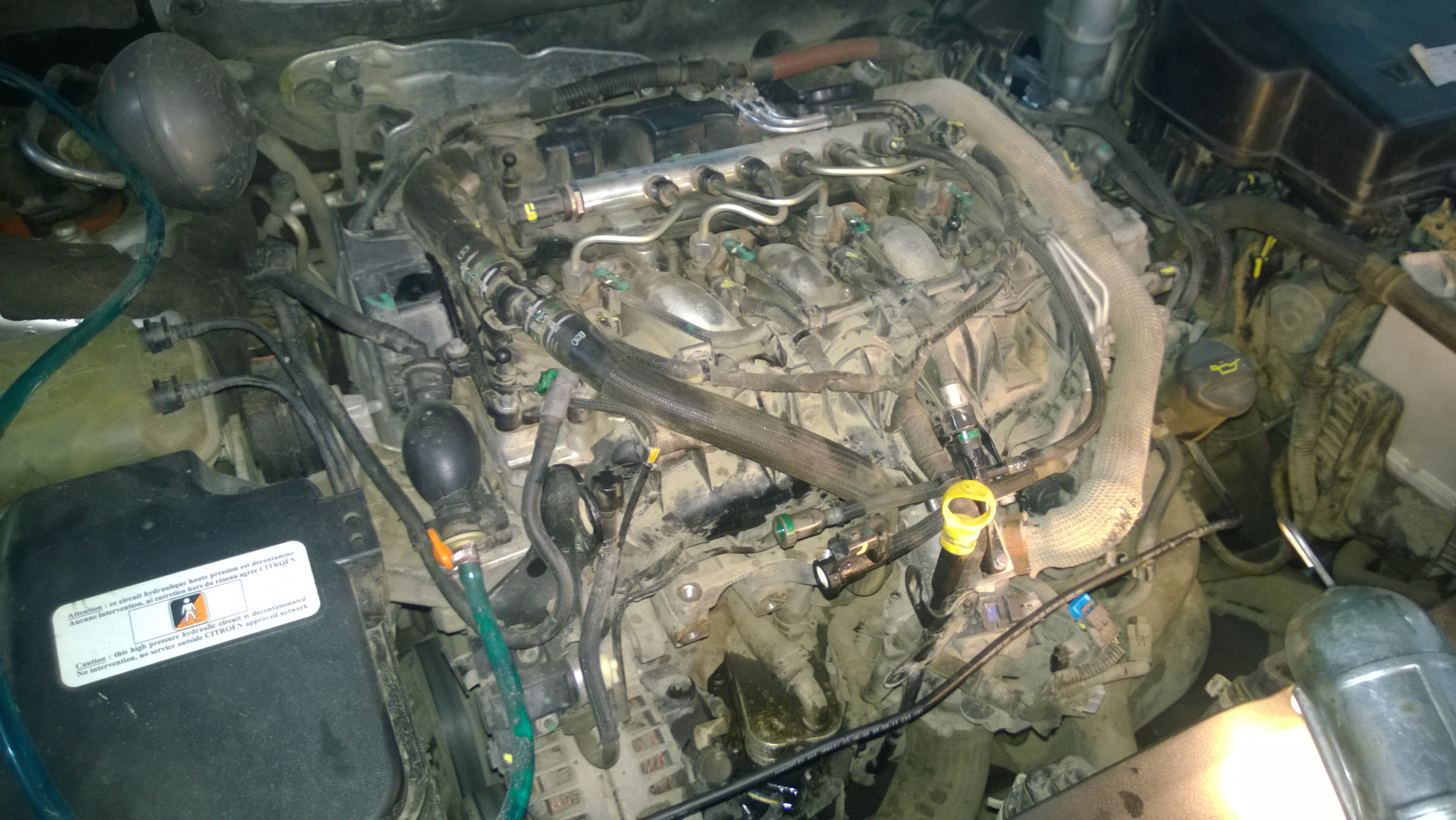 На фото лишь малая толика, мало фото делал, по факту же все что видите, то все и откручивать придется. Болтов штук сто, разъемов штук двадцать, куча трубок, датчиков, шлангов разного цвета и размера. И постараться надо все не перепутать.