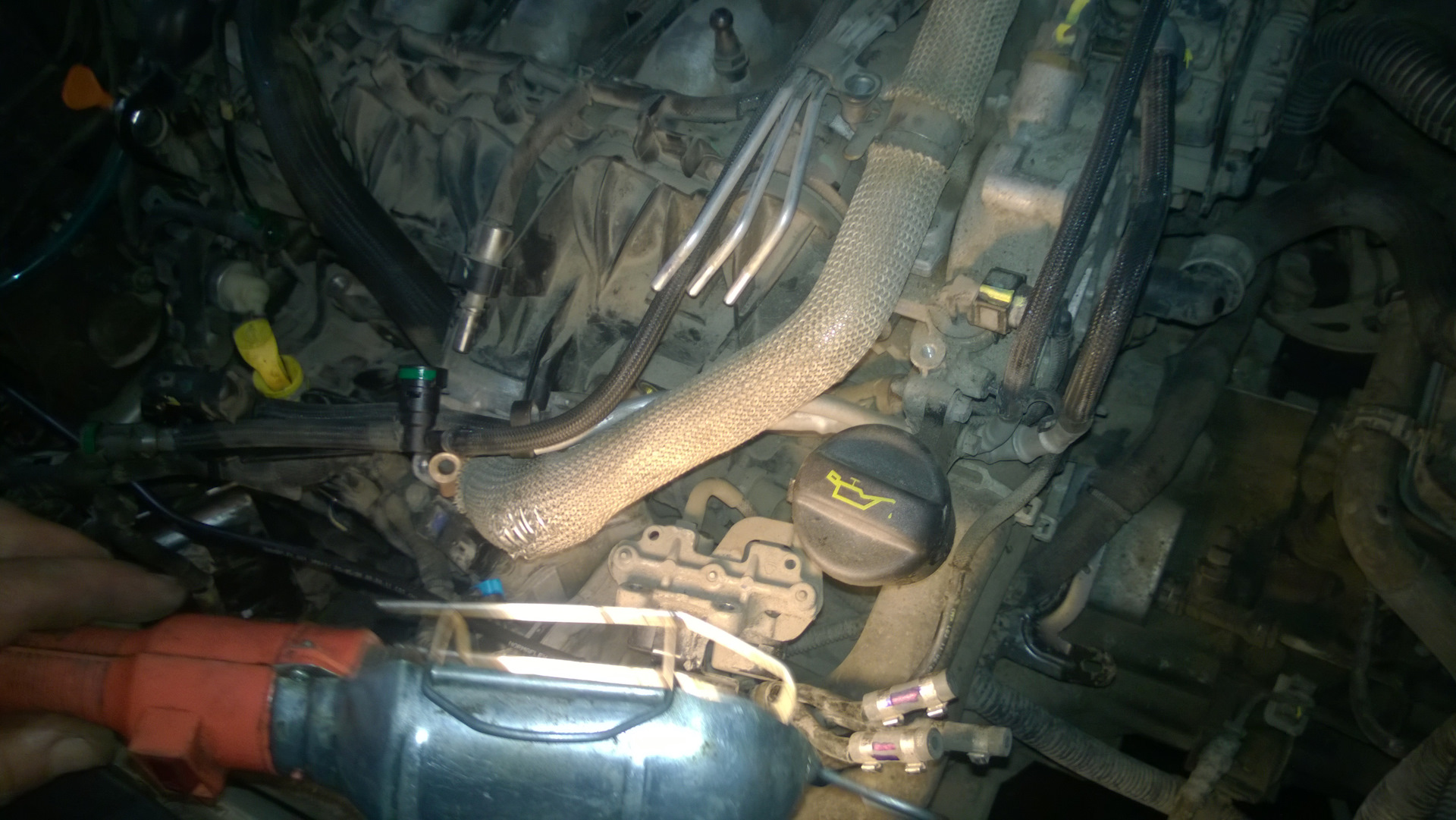 Но наш движок 2,2 HDI очень сильно отличается конструктивно и оказалось чертовски геморройно добраться до впуска. А ведь под ним еще спрятаны свечи накала, а если их менять надо?..Пи, пи, пи…день убит будет точно.