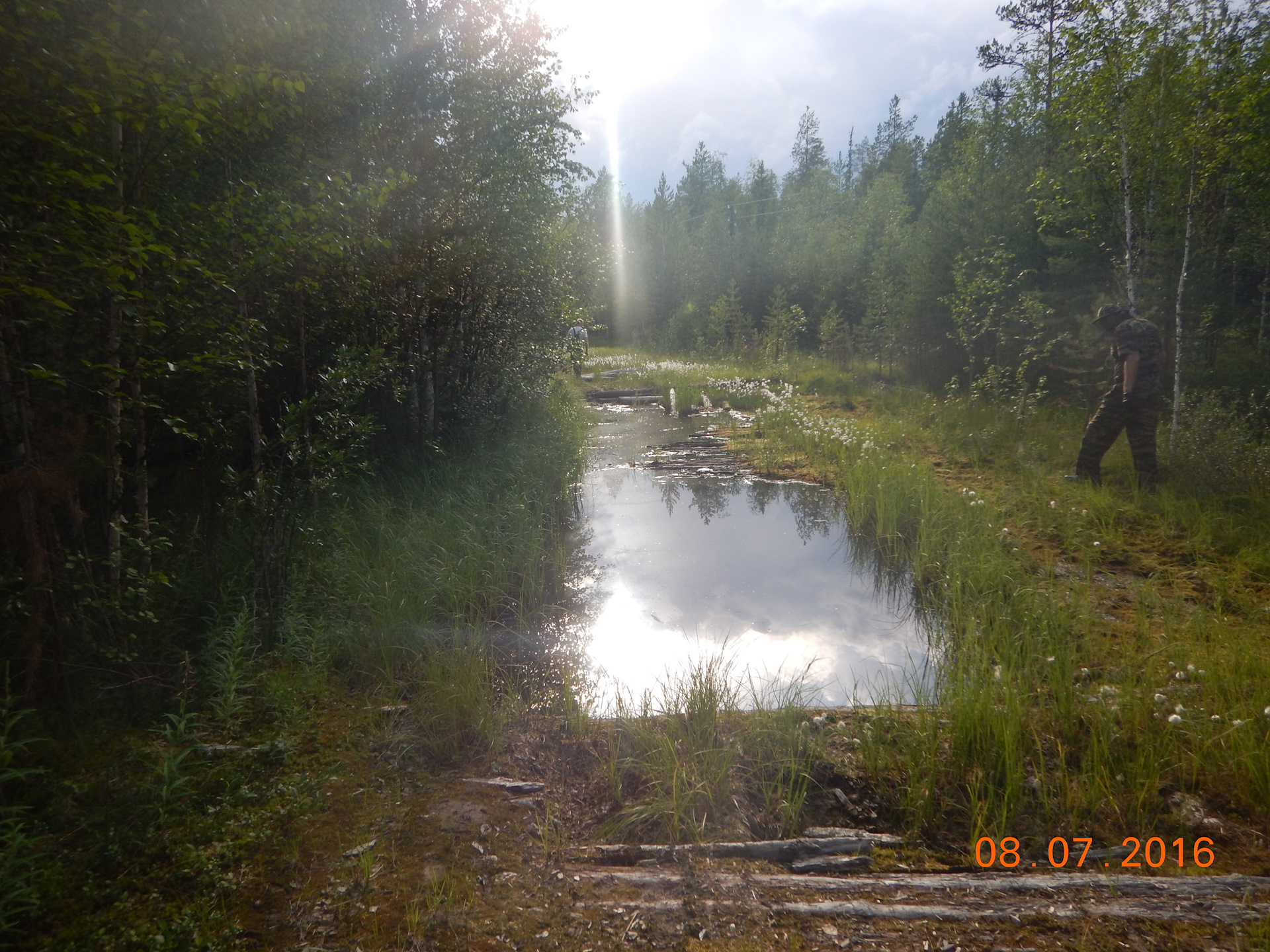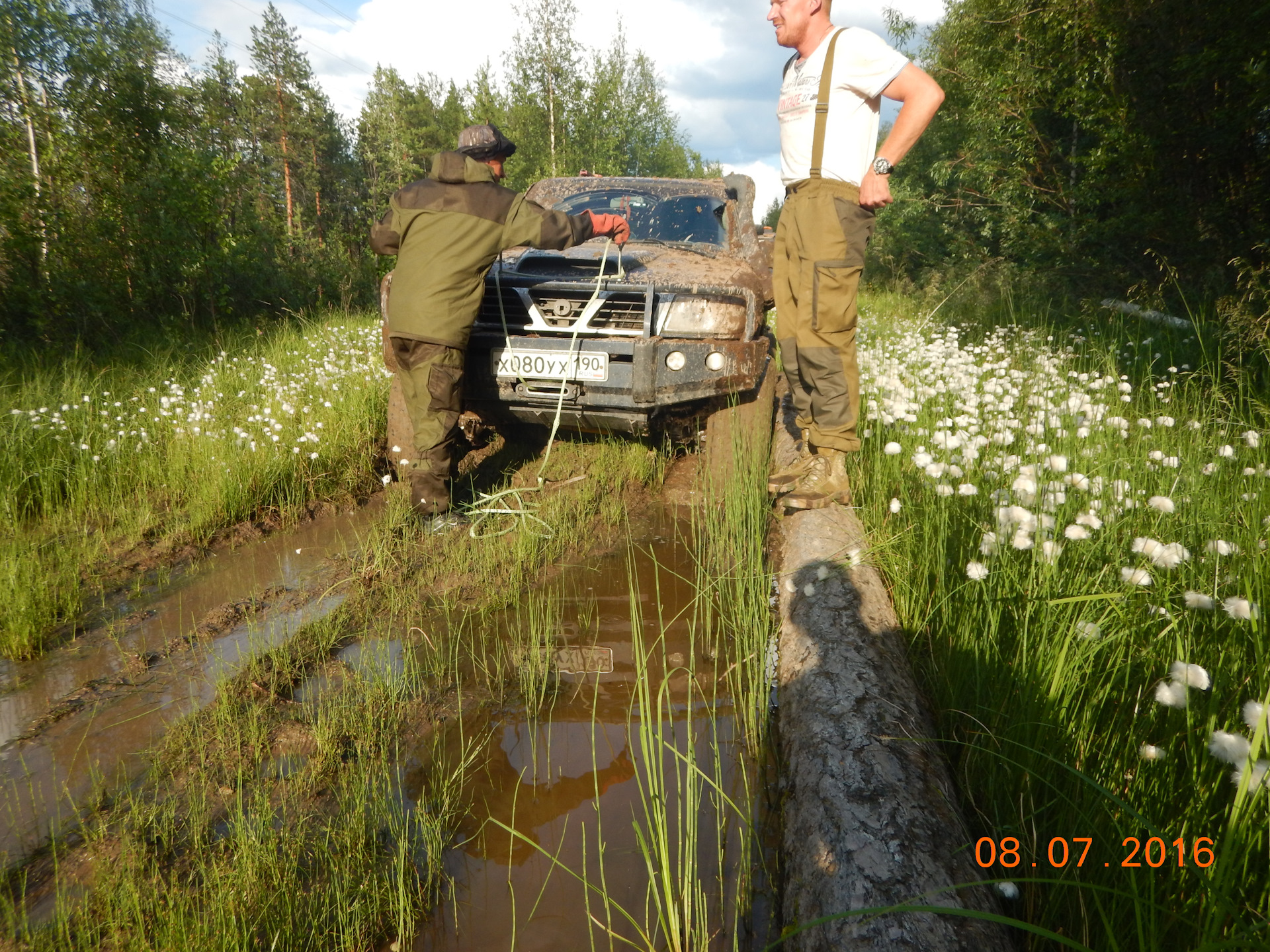 В принципе, до Мылы добрались вполне нормально, без больших трудностей. Сейчас вспоминается только одна лужа, блин, бревна в ней кто-то разложил неправильно, вообщем во что-то уперся задними колесами, и пришлось разматывать лебедку.