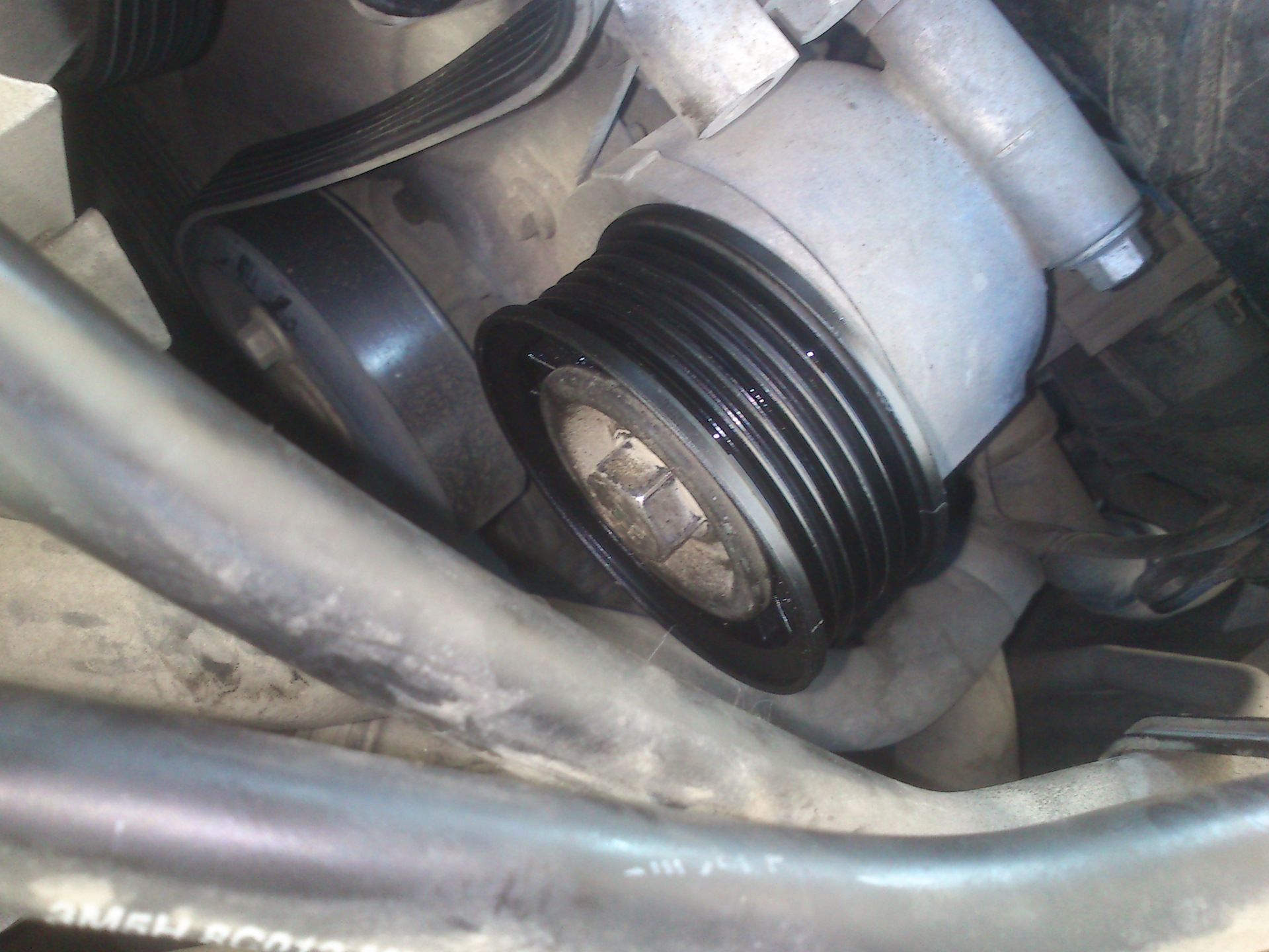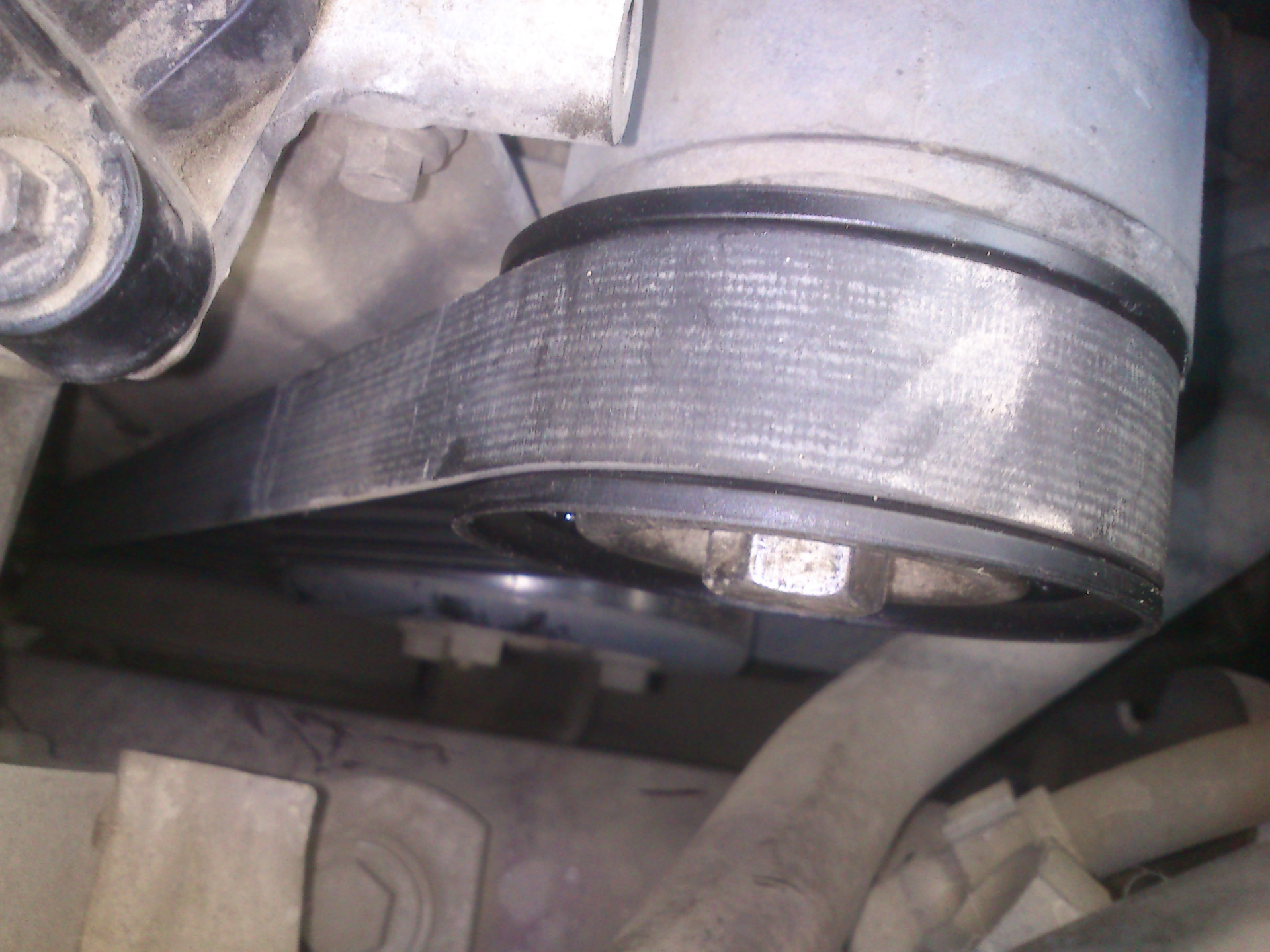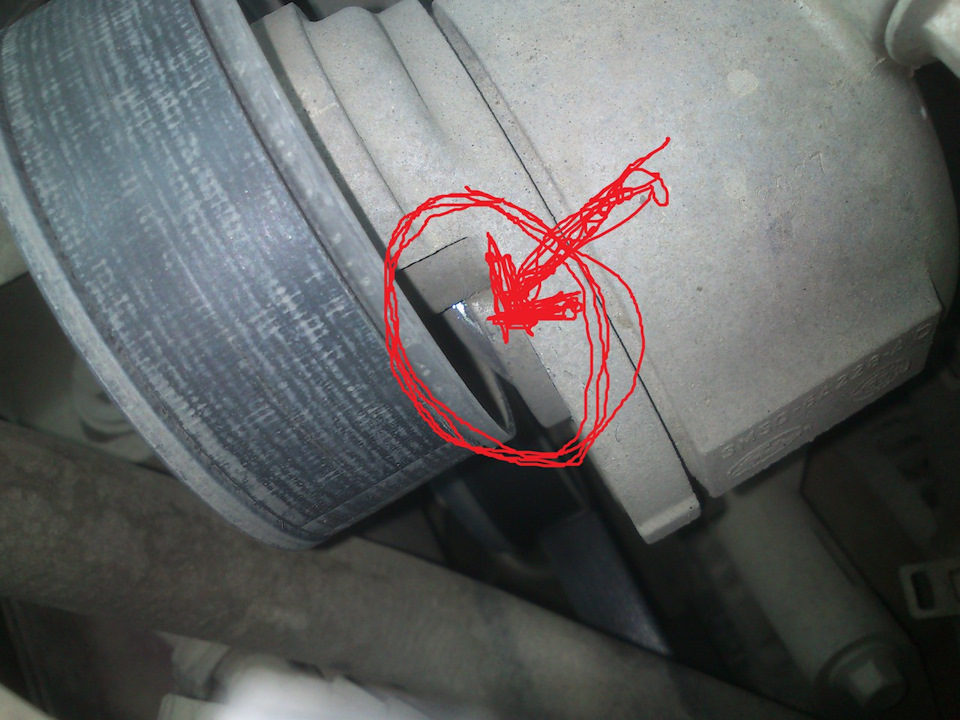 Так вот, появился какой-то посторонний звук под капотом… после прослушиваний и присматриваний обнаружил нечто странное, а именно что-то болтается под роликом натяжителем и трётся об ролик…