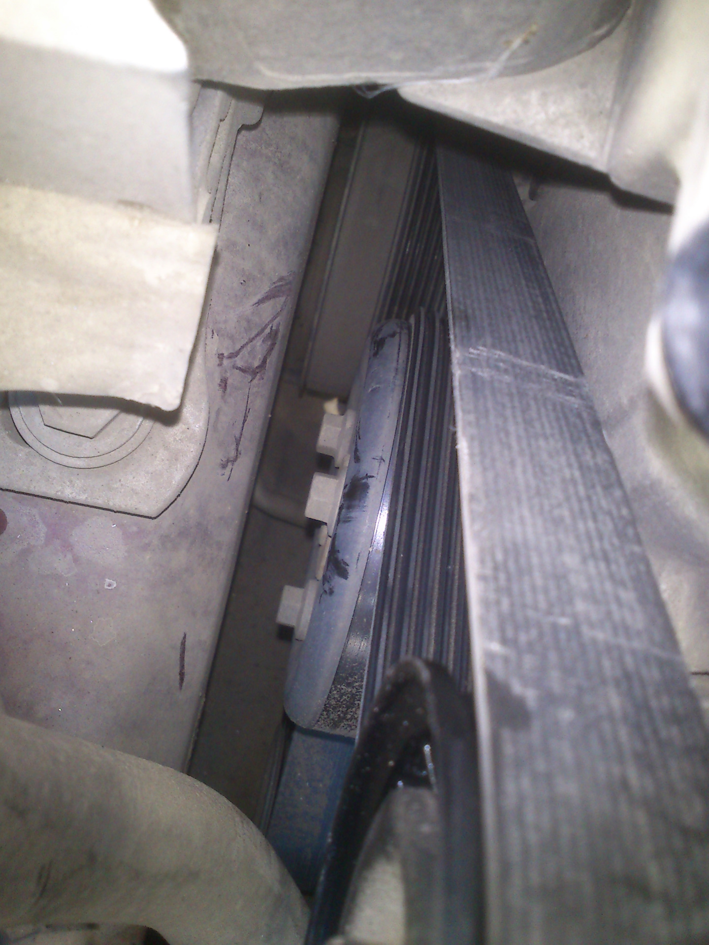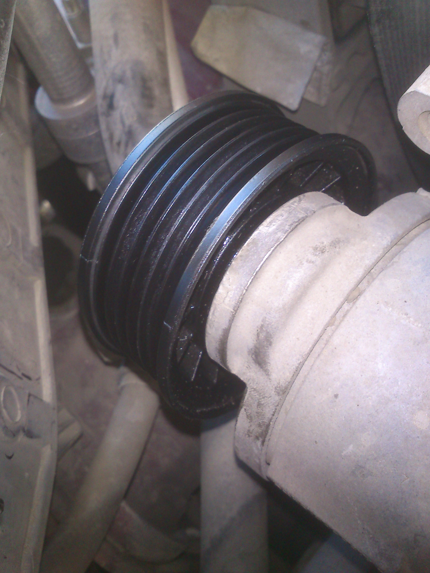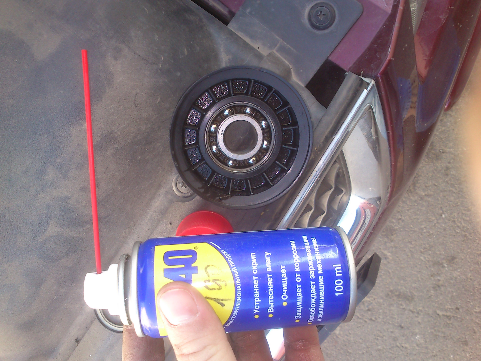 Так вот, появился какой-то посторонний звук под капотом… после прослушиваний и присматриваний обнаружил нечто странное, а именно что-то болтается под роликом натяжителем и трётся об ролик…