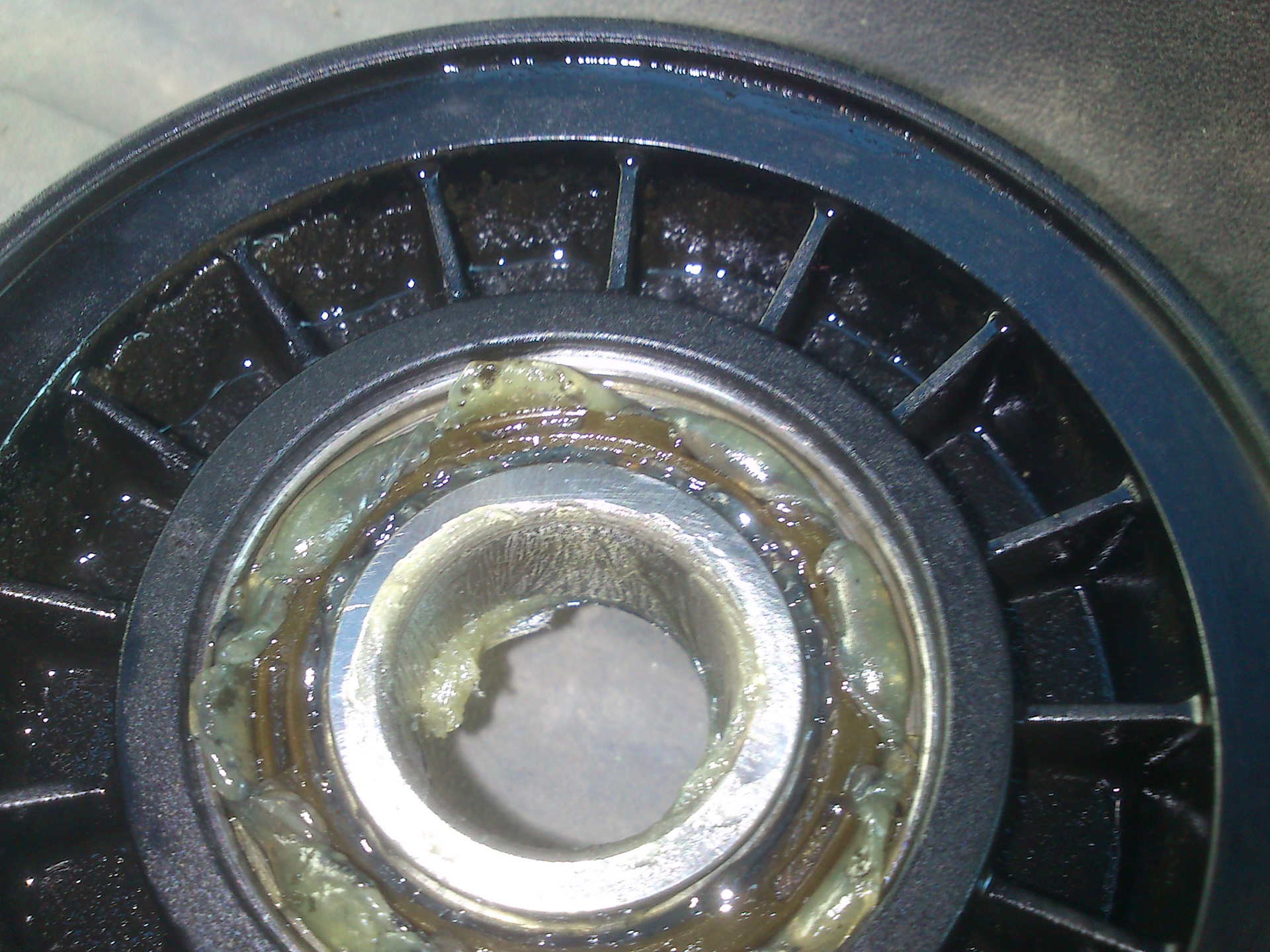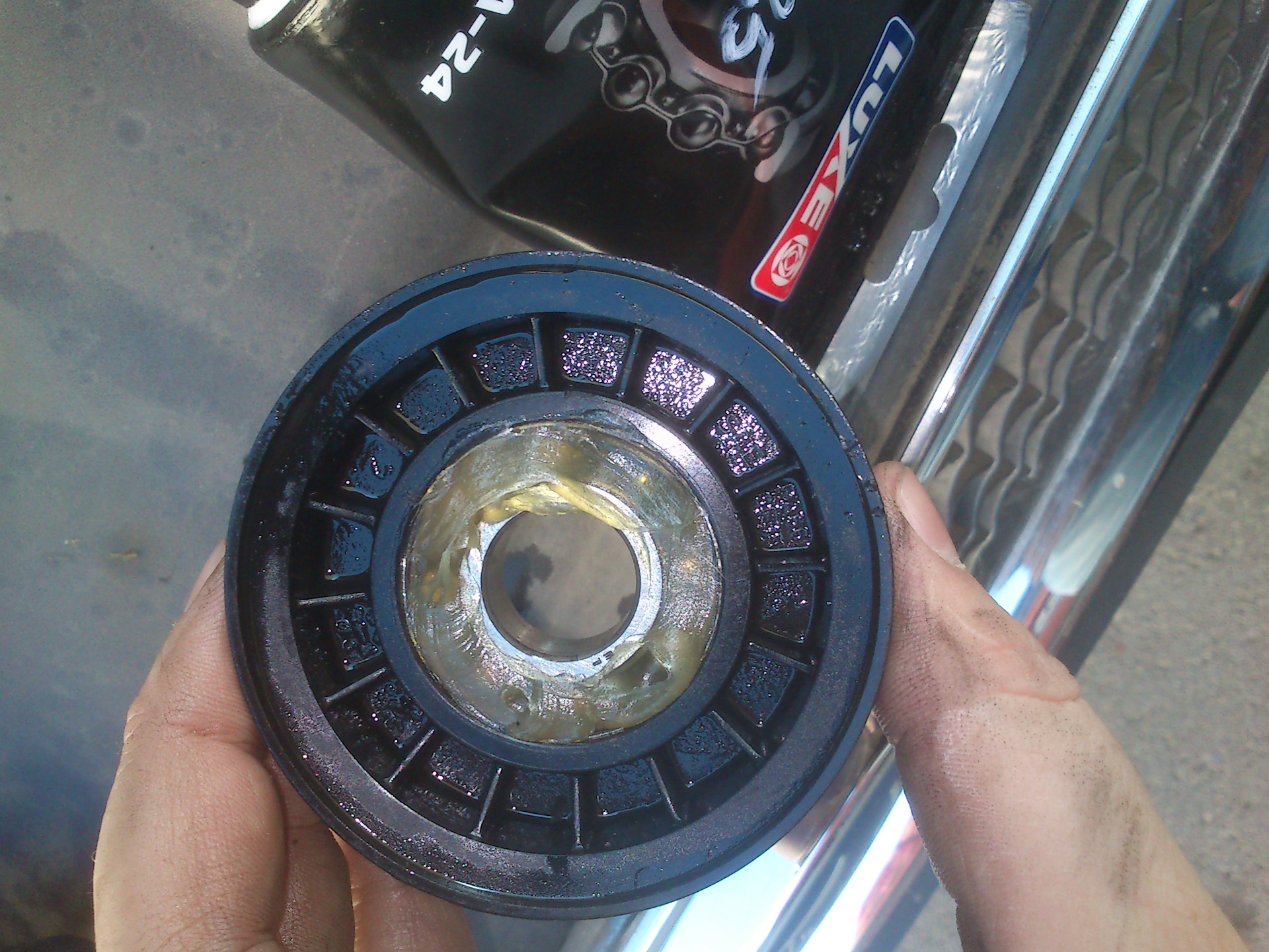 а после начал заполнять и продавливать новую смазку сквозь подшипник