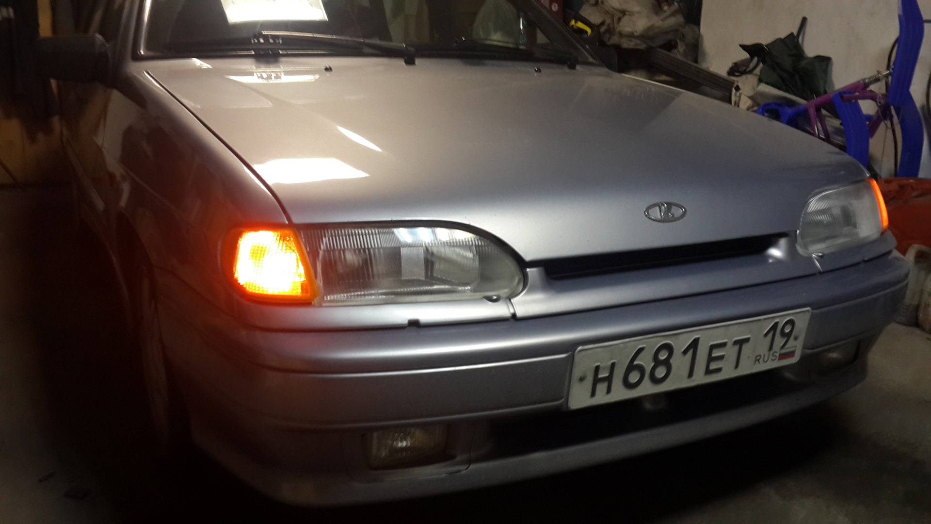 Уже както делал на 14ке габариты в поворотниках только повторители были белые, лампочки в габаритах сгорели в место замены решил сделать подсветку в поворотниках, нечего сложного! Снимаем поворотник, сверлим в нем отверстие диаметром как у штекера габарита, вытаскиваем штекер габарита из фары, удлиняем провод, и ставим все по местам)