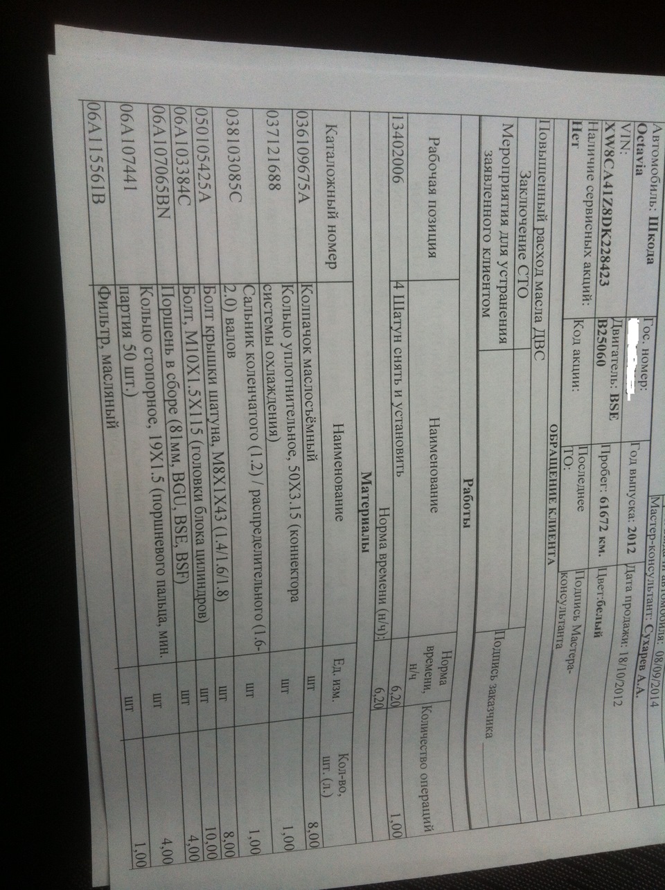 Пока согласовывали ремонт с ВАГом я долил 2 литра(((((( Вообщем забрали машину на вскрытие и диагноз — полная замена поршневой группы (по гарантии)