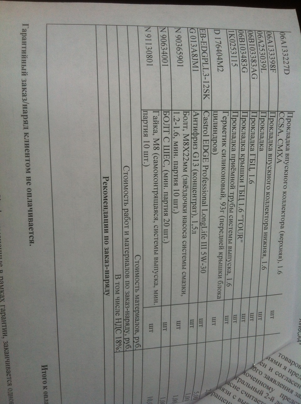 Так на основании этих заказ-нарядов гарантия 2-х летняя действует на работу и запчасти. Поспешил выкинуть!