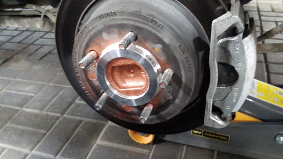 Расширители были покрашены и установлены на машину, далее под диски были изготовлены алюминиевые центровочные кольца и собранные колеса водрузились на законные места.