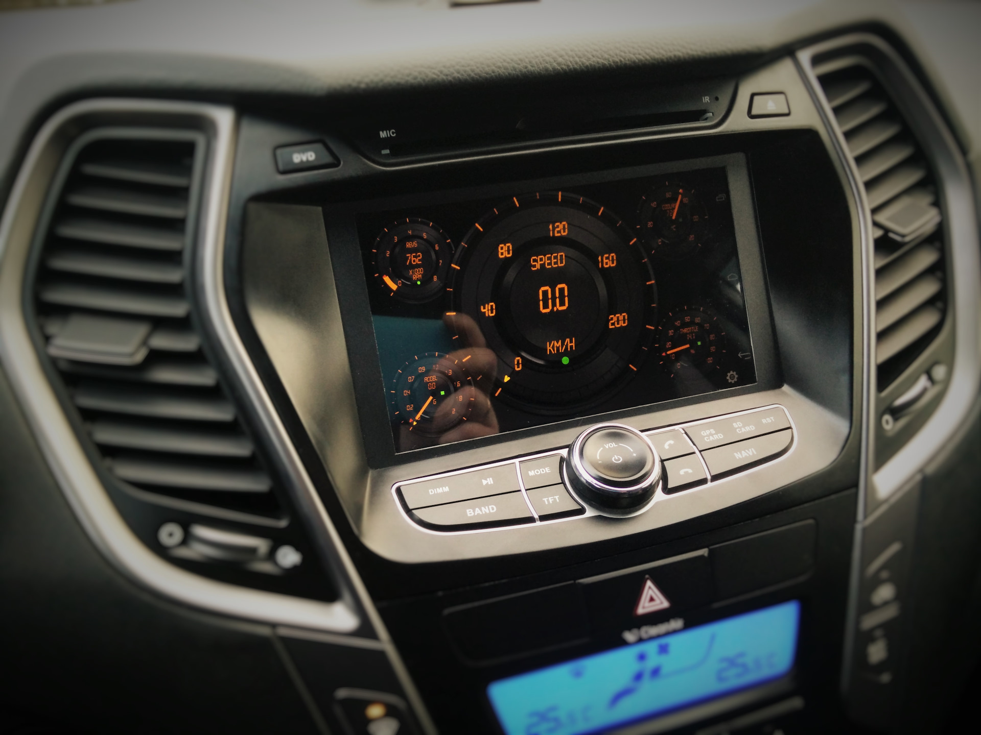 . Кнопку вкл/выкл планшета припаял к кнопке on/off на рамке, питание на планшет завел через обычный usb кабель, в любой момент его можно отключить. Так что питание на планшет подается постоянно. Пока еще не придумал, что с эти можно сделать. Ну и закачал в планшет программы для навигации, диагностики, интернет радио и еще кучу всего. Новый Навител с заставкой Санта Фе)