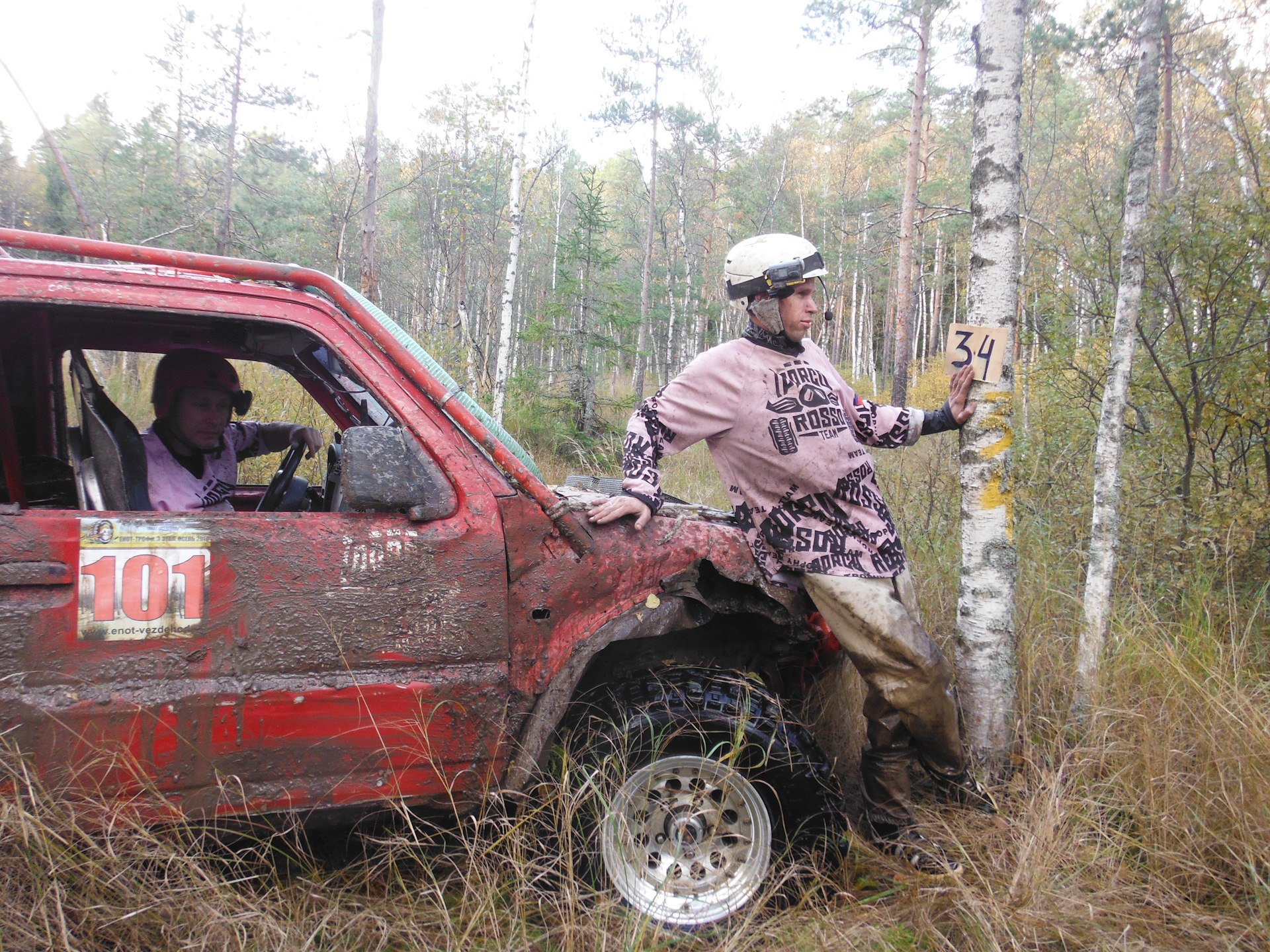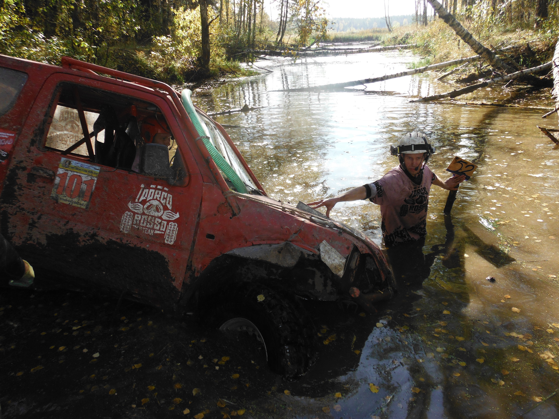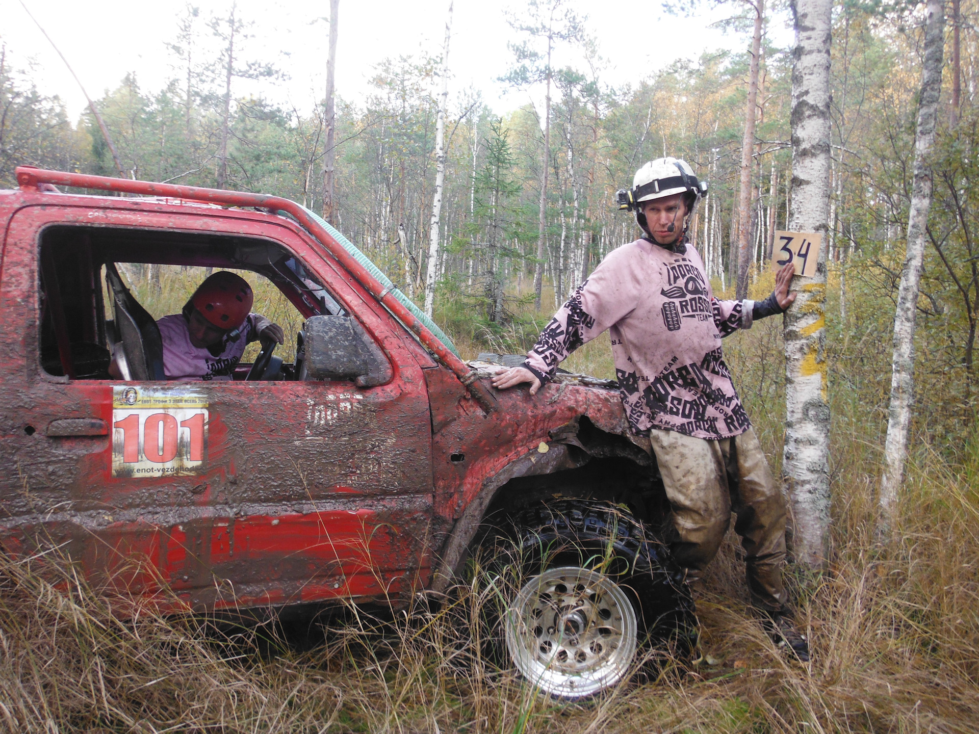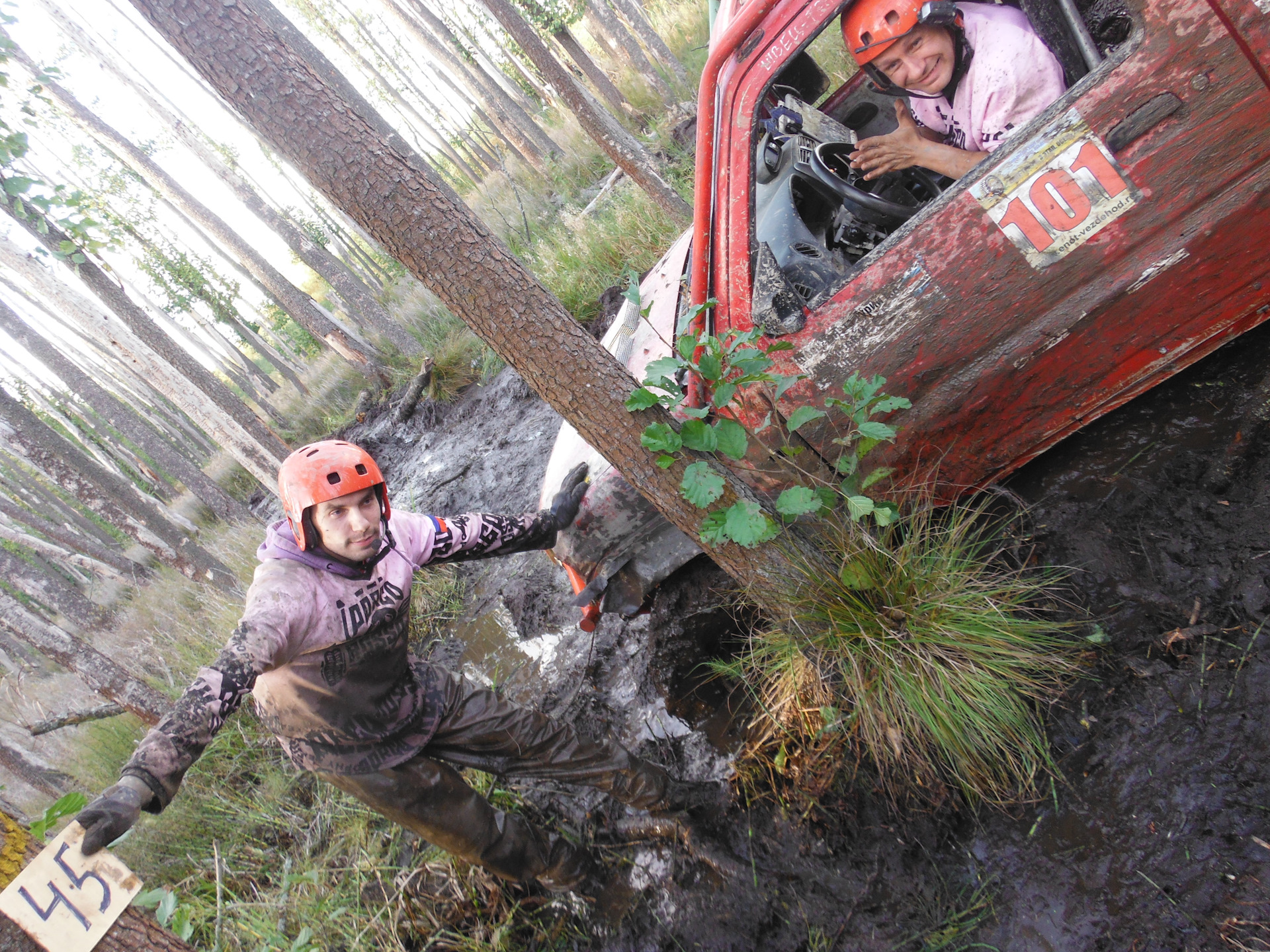 Молодцы! Вас фоткать удобно, вы на зелёно-коричнево-жёлто-чёрном фоне приятно выделяетесь цветами одежды и авто :-) Но, честно признаюсь, не думал я что вы уже выберетесь из канавы — ситуация слегка напоминала МотивГир… :-)