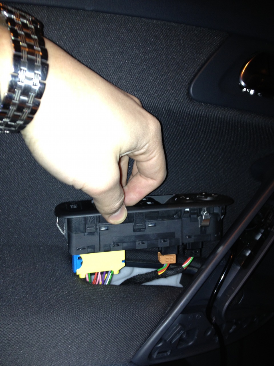 4. вытаскиваем блок управления стекло подъемниками ( я просто поддел его и потянул на вверх) и отключаем его.