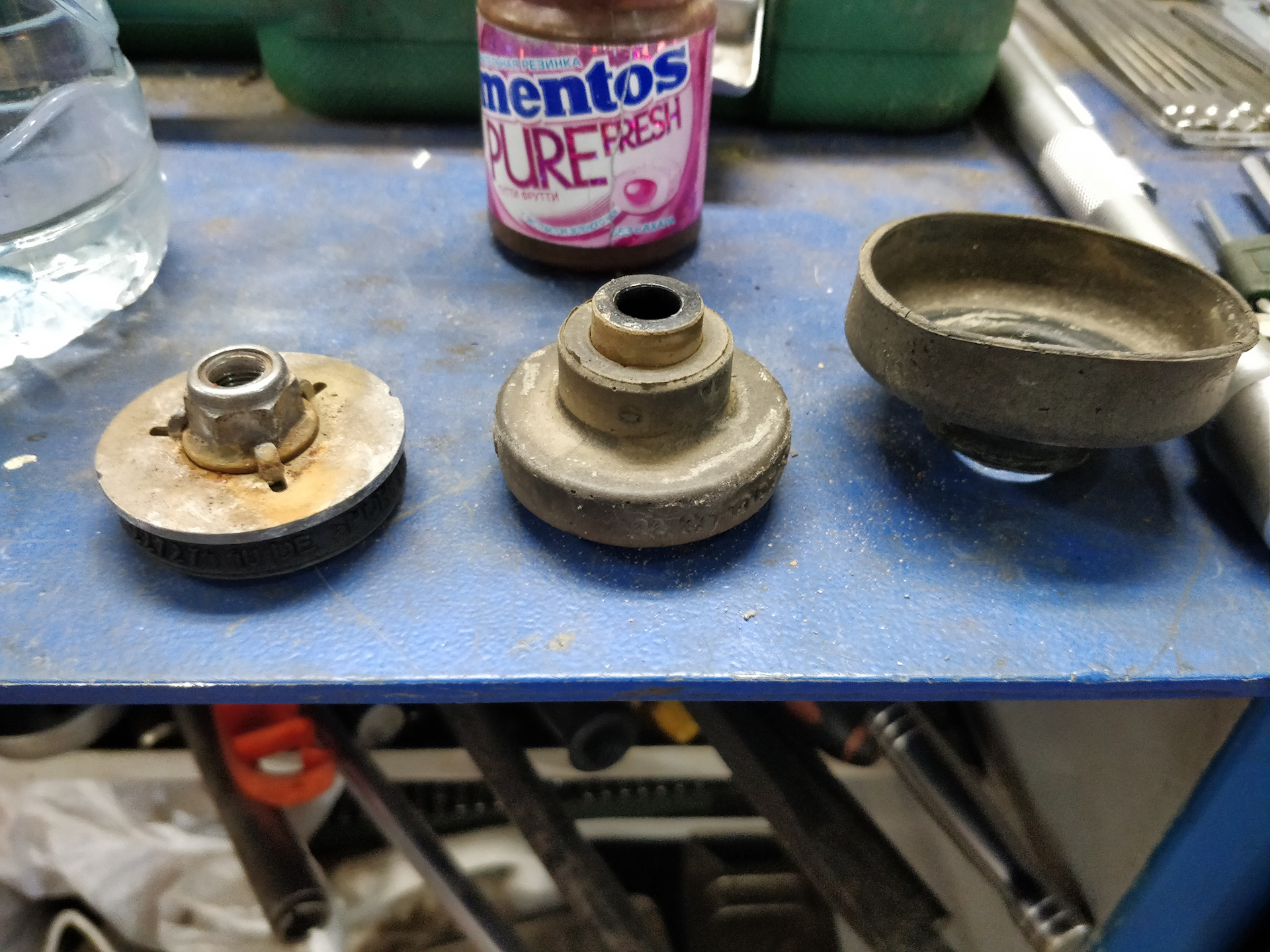 Собираем на новом амортизаторе все пыльники, отбойники, шайбы и опоры, и устанавливаем на место