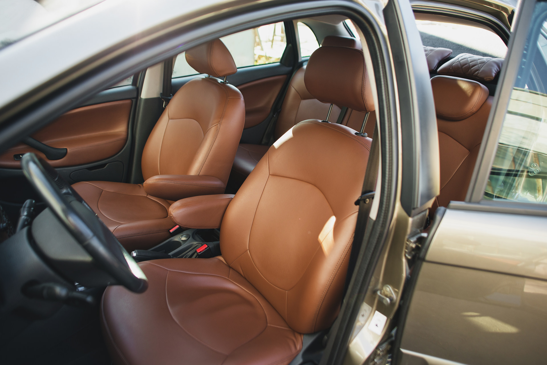 ну и с цветом кузова тоже красиво в целом, когда через зеленоватые стекла рыжая кожа проглядывает)