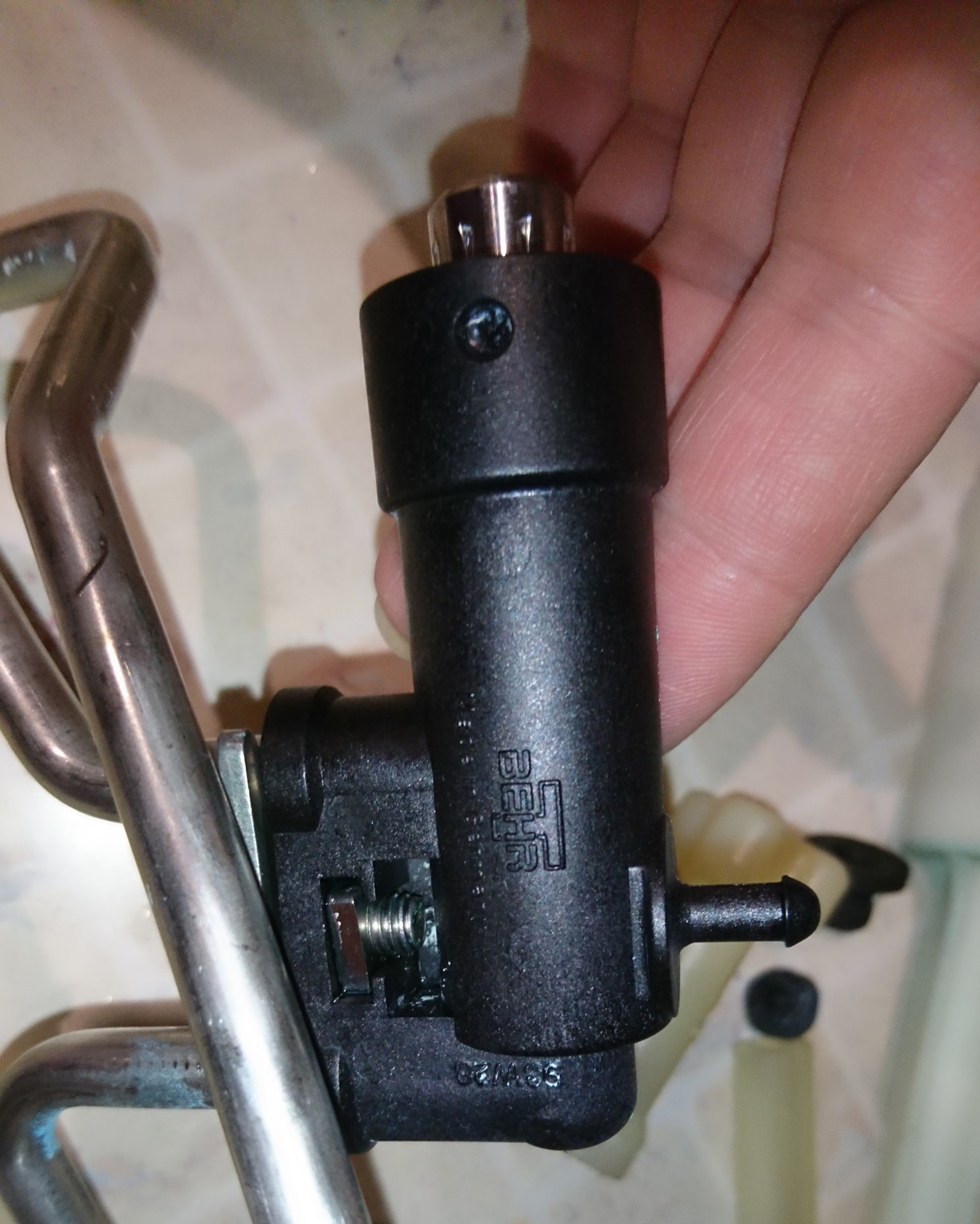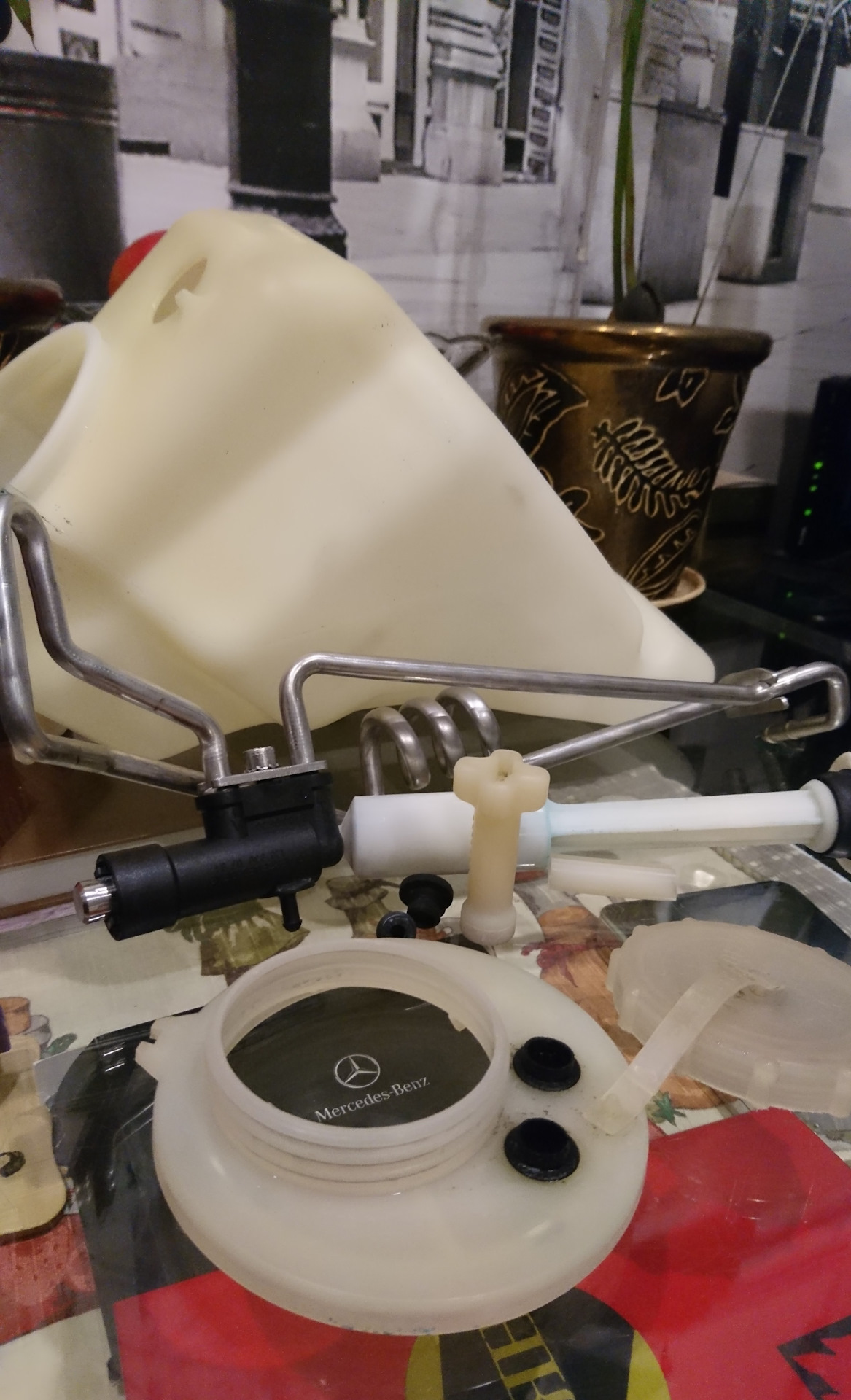 А еще купила новый бачок омывайки. Собственно, это и была цель моего визита в сервис — снять старый бачок и вытащить из него потроха.