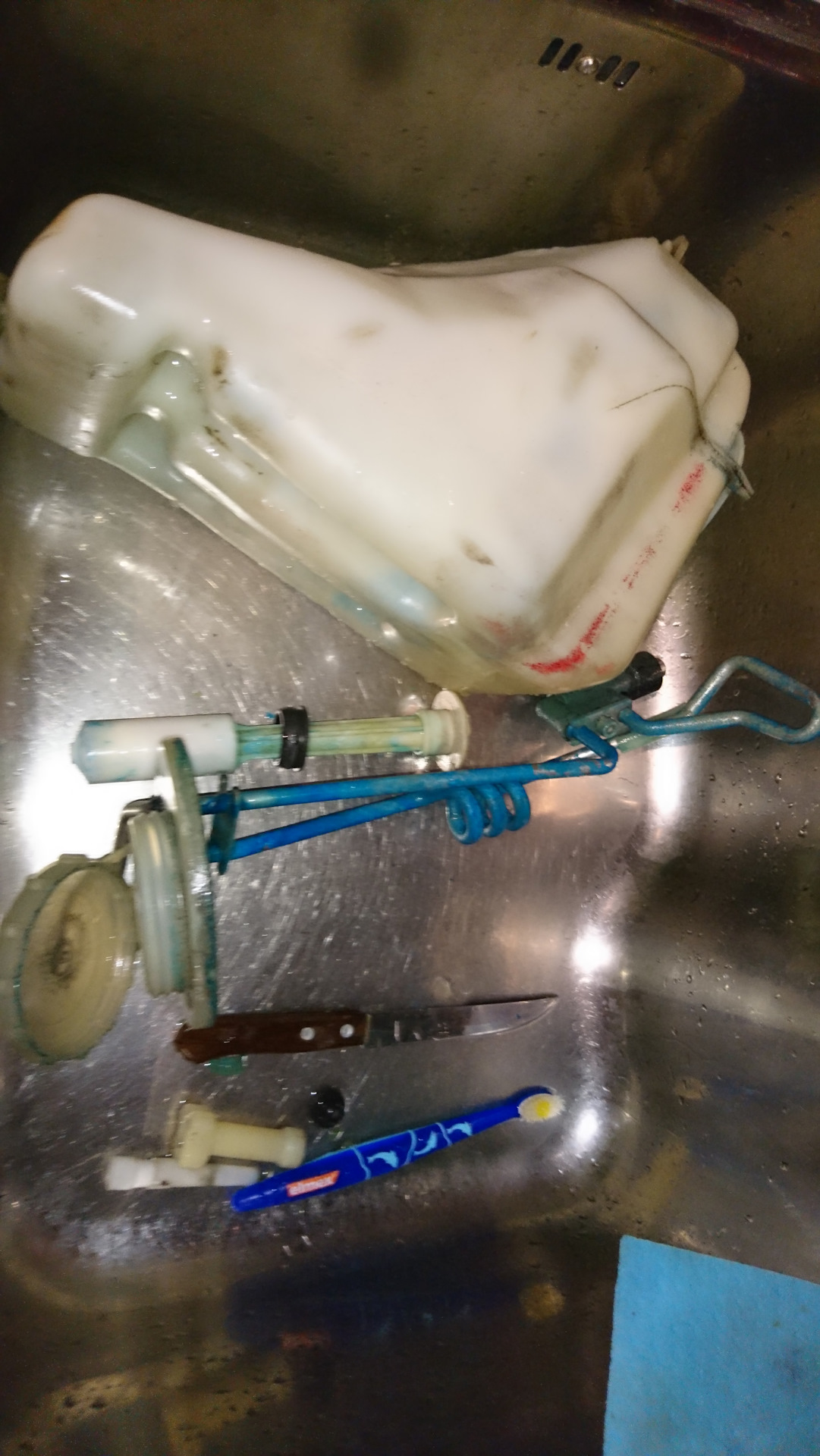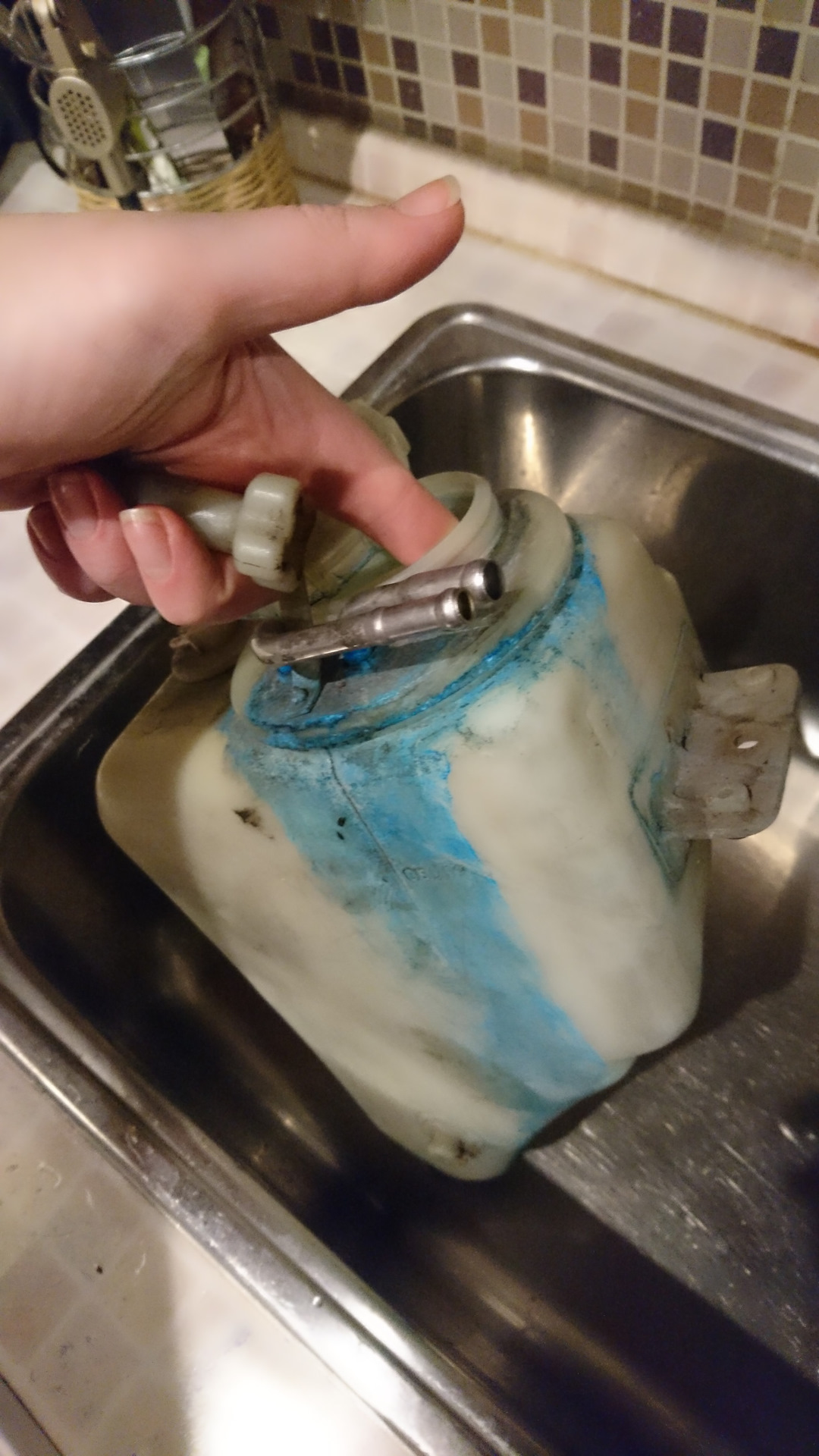 Но хоть все отмыла и отчистила (старый бачок не идеален!), поставлю новую заглушку в бачок на отверстие, что для омывайки фар (нет такой опции у меня), и новую крышку заказала. А отмытый бачок с крышкой положу в закрома родины, пусть будет.