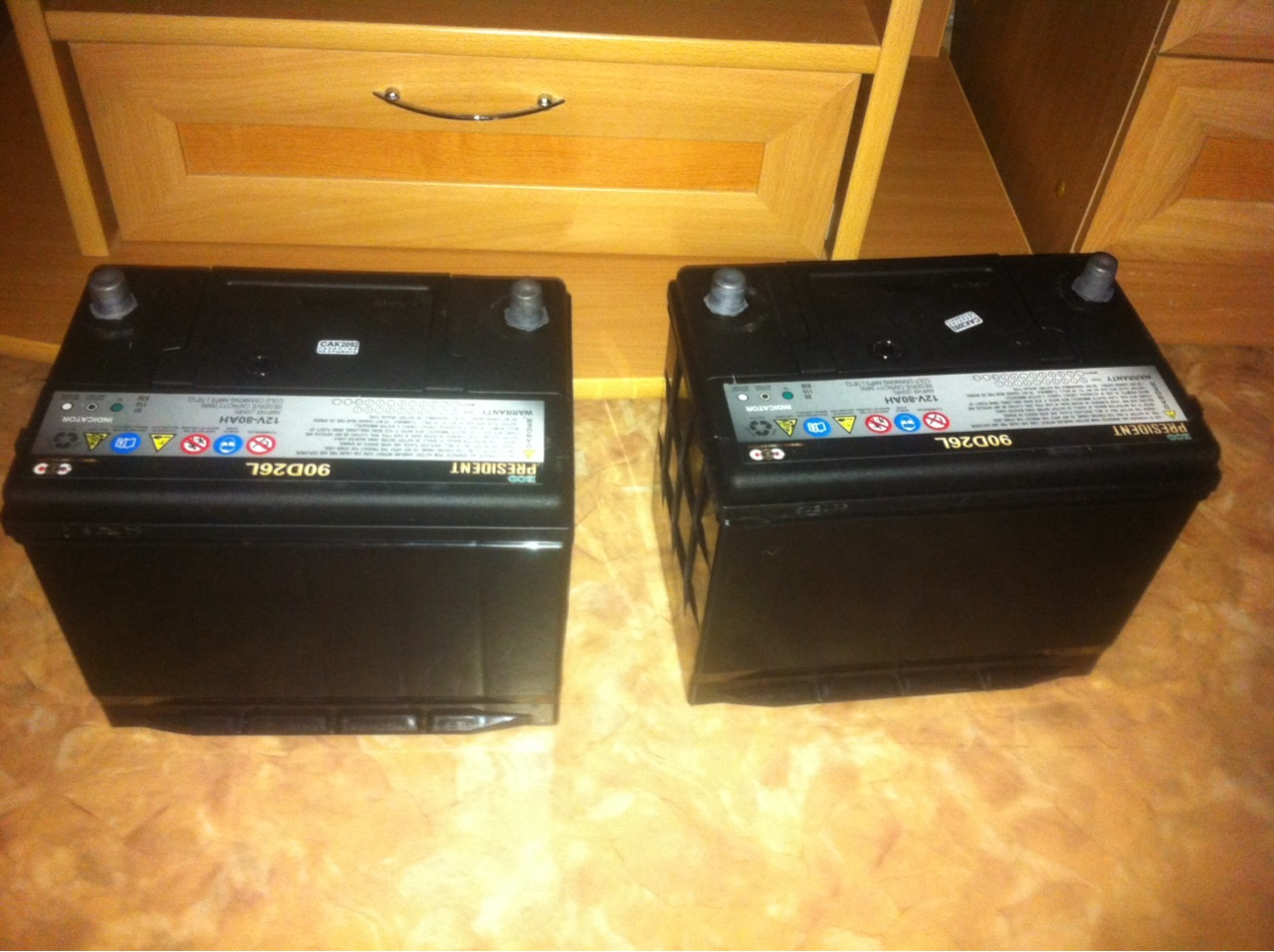 В общем, в субботу поехал по городским аккумуляторным магазинам (а их всего два). Выбора в размере 80D26L практически не было, поэтому взял в общем то просто то чего было в количестве 2 шт. и в разумные деньги.