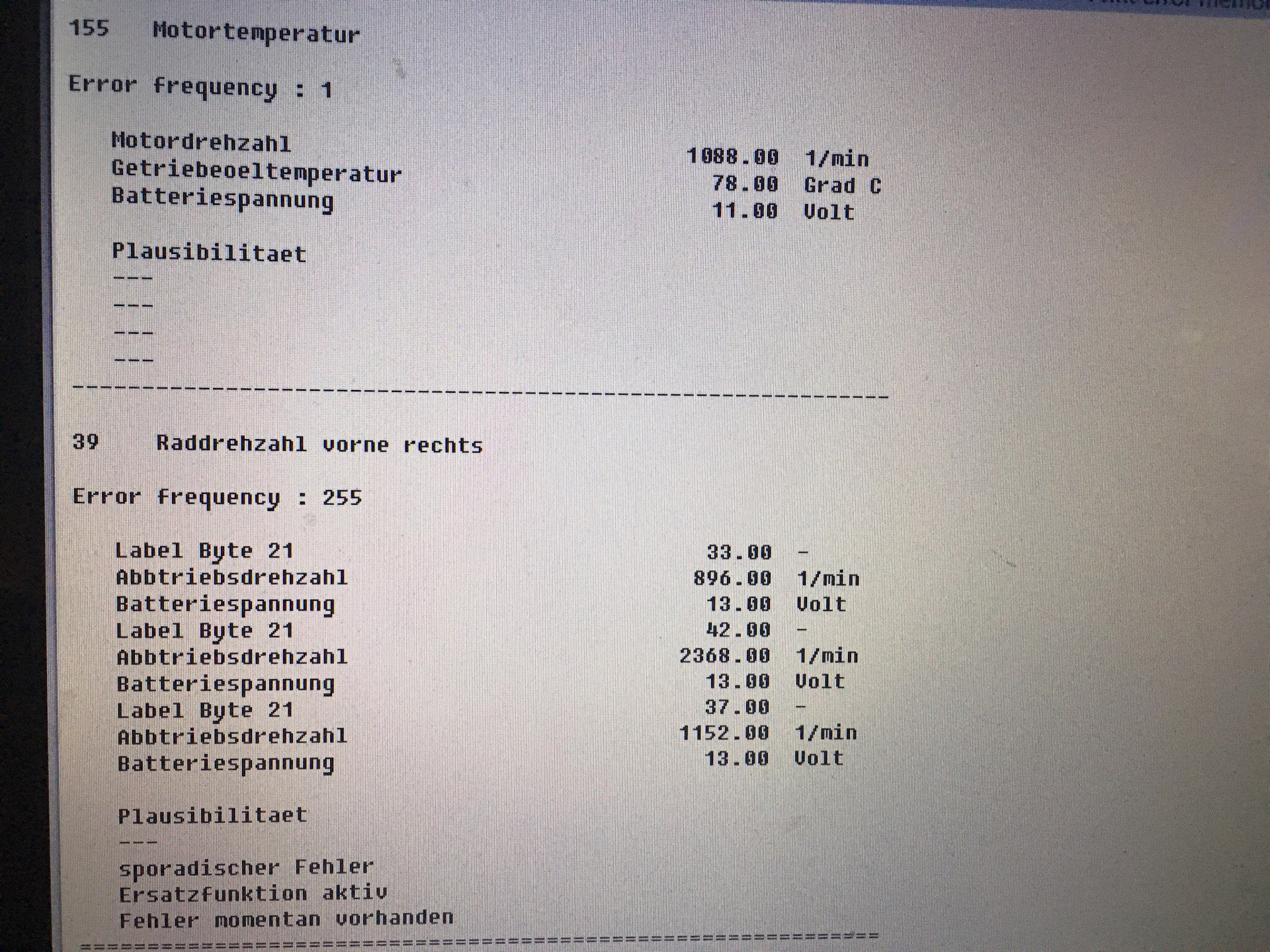 39 Raddrehzahl vorne rechts — опять же ошибка дачика АБС переднего правого, считывание скорости вращения колеса