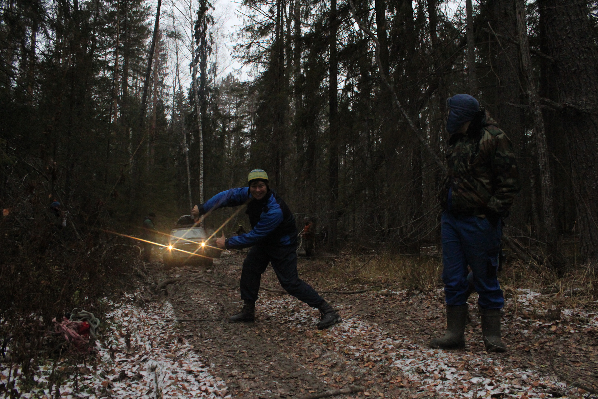 Все три дня прошли как нельзя лучше. Вот если бы ещё наш третий день поменять на наш первый — было бы вообще круто! Мы успели посетить порядка 15-20 точек. У нас на маршруте было всё: сидели хоть раз но все, лебедились, копали, лазили по заброшенным домам, пытались проложить свою трассу, видели даже вот такую технику, которой и красный пунктирный эгегей совсем не почём: