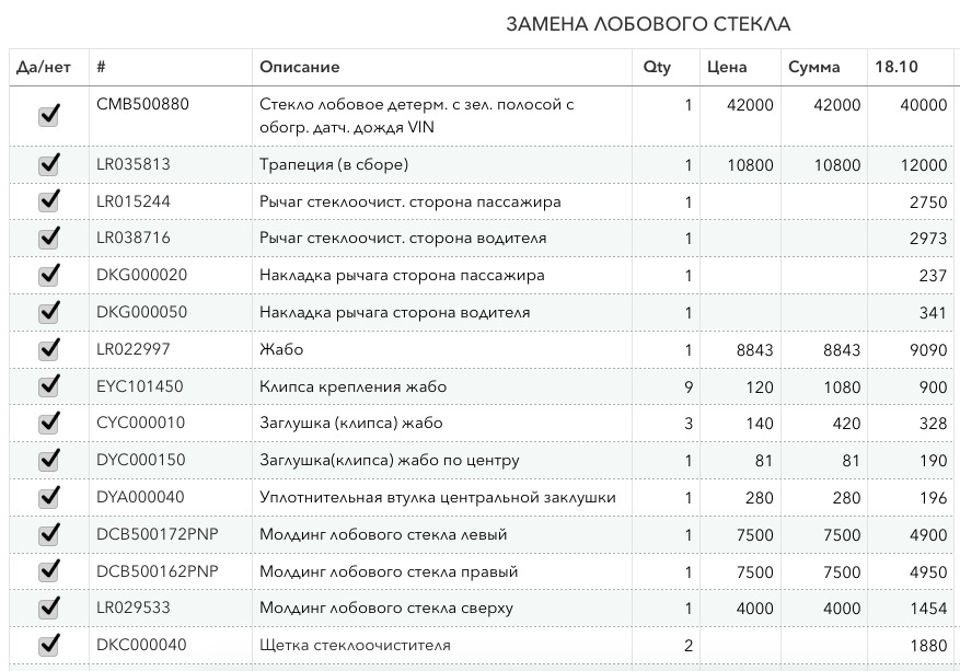 В рамках операции по замене лобового стекла был изучен LRCAT (как оказалось позже — не достаточно хорошо))) и заказаны следующие детали: