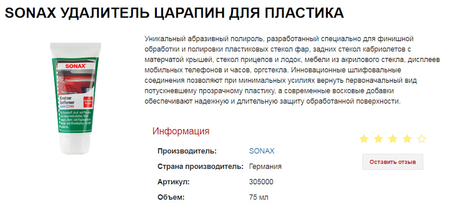 Но особого результата не получил . В отзывах писали что помогает от мелких царапин на кузове, сам не пробовал но на днях испытаю .