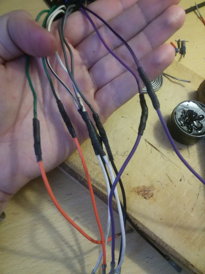 Все подсоединил и скрутил изолентой косу проводов секторами, как делает Жека Матвеев (канал на youtube "мастерская pit_stop"). Не стал скручивать места, где была термоусадка, чтобы не перетиралась изоляция.