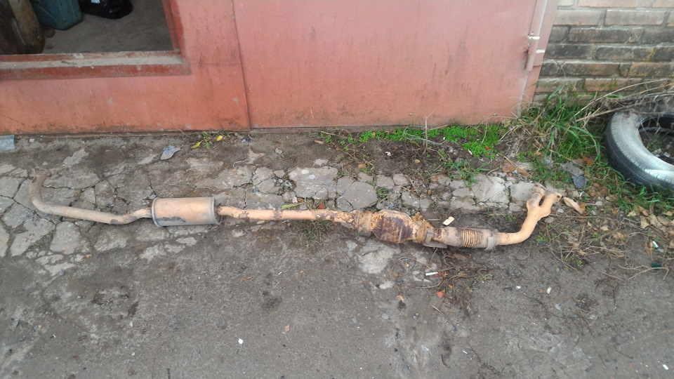 Поэтому было принято решение варить максимально дешевую, максимально тихую систему! Главным посылом послужило какое — то бряканье со стороны резонатора, похлюпывание под гофрой и вонь выхлопа в салоне после 4000 оборотов! Пока все снято для ремонта, можно спокойно, не напрягаясь искать запчасти, составляющие и курить форумы.