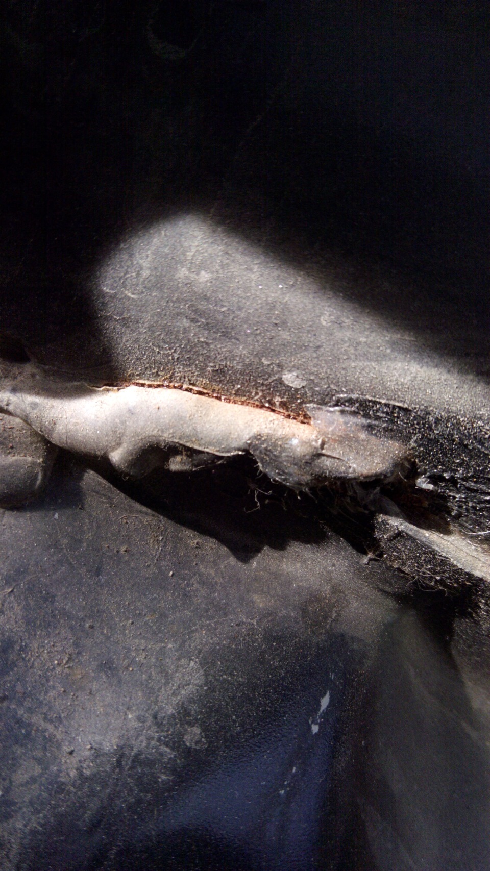 Удалил герметик со шва — он то и давал иллюзию целого и невинного соединения.