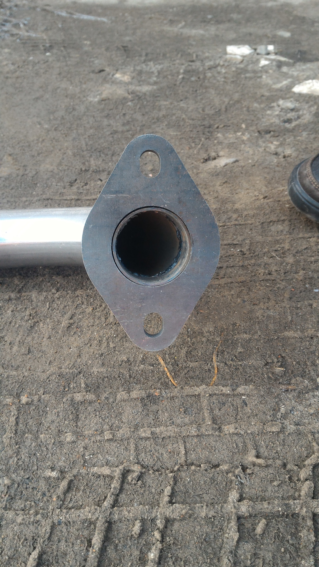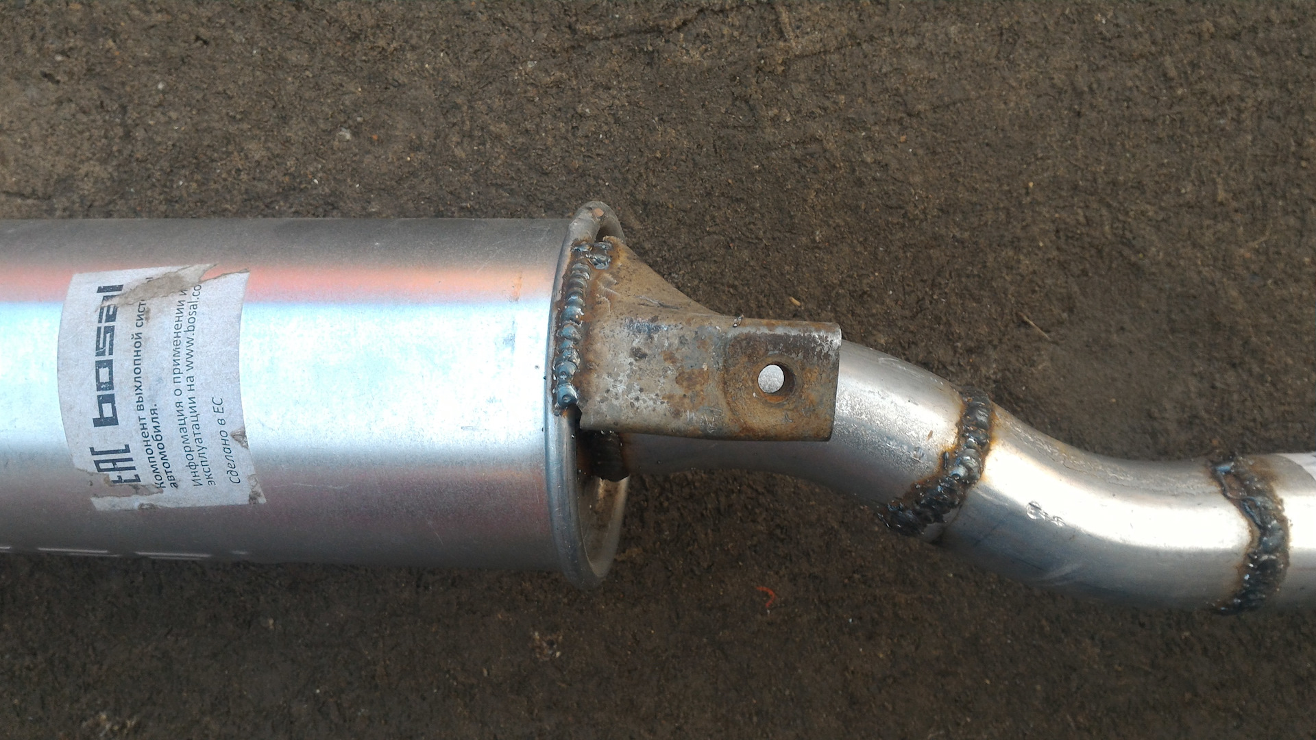 Ну и на последок, родной кронштейн резонатора переварен к новой трубе, вся система держится на 3 точках — двигатель, кронштейн резонатора, кронштейны бочки