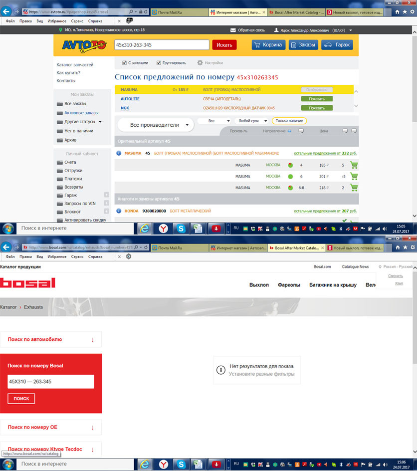 Артикул босала — 6 цифр, по 3 через дифис, все артикулы знает экзист. У меня профессиональная программа по подбору запчастей, она компилирует информацию от десятка разных поставщиков, выдавая мне результат по срокам ценам и прочее… Моя проф деятельность — продажа запчастей)