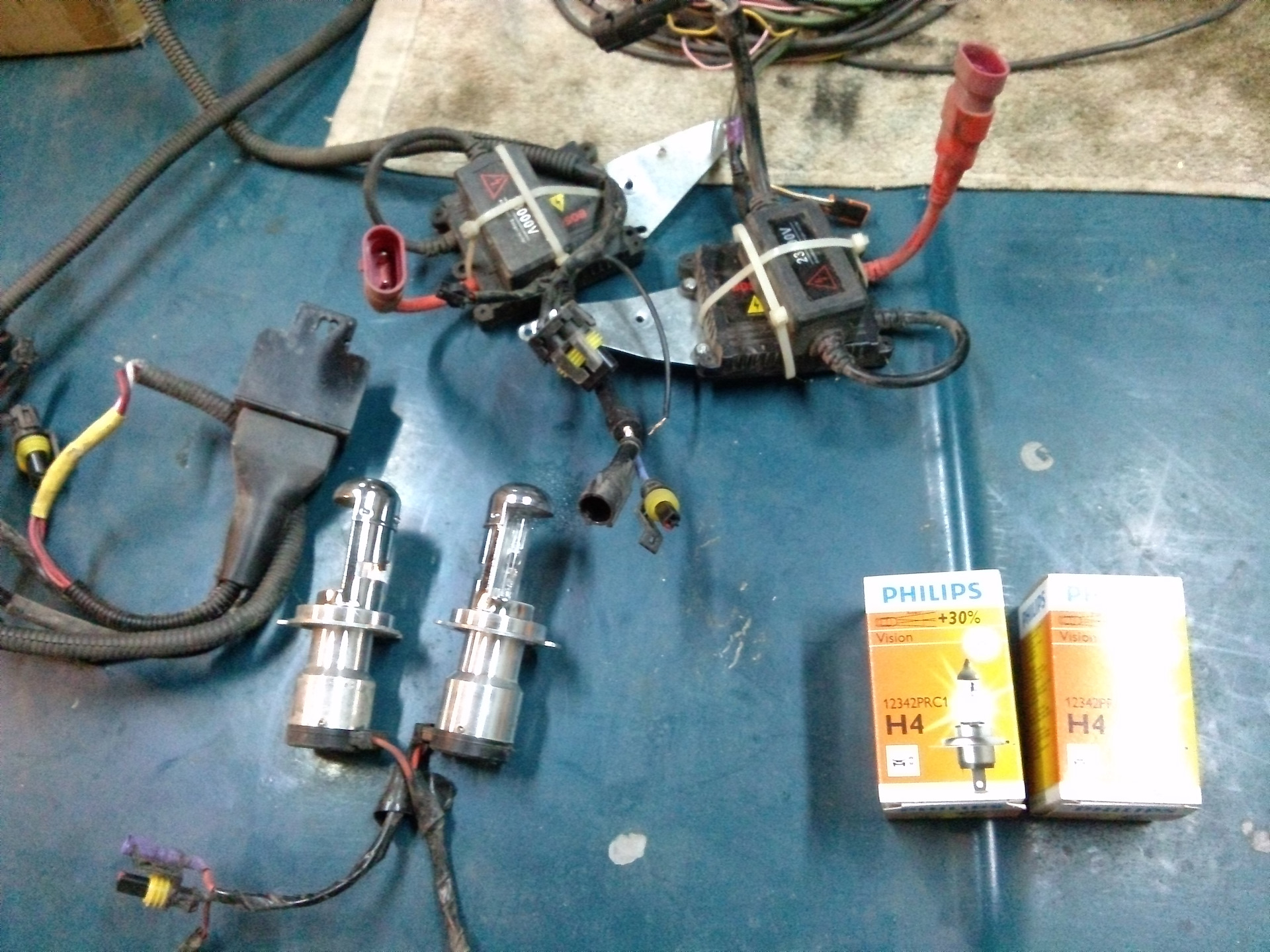 ну и пришло время когда ксенон начал подыхать, сначала одна лампа, то розовым светила то фиолетовым потом вобще сдохла ездил с одной фарой, как то некогда было, пока и вторая фара не начала подыхать, после очередной ночной поездки межгород было решено да ну нахер, даещь обычные лампы!