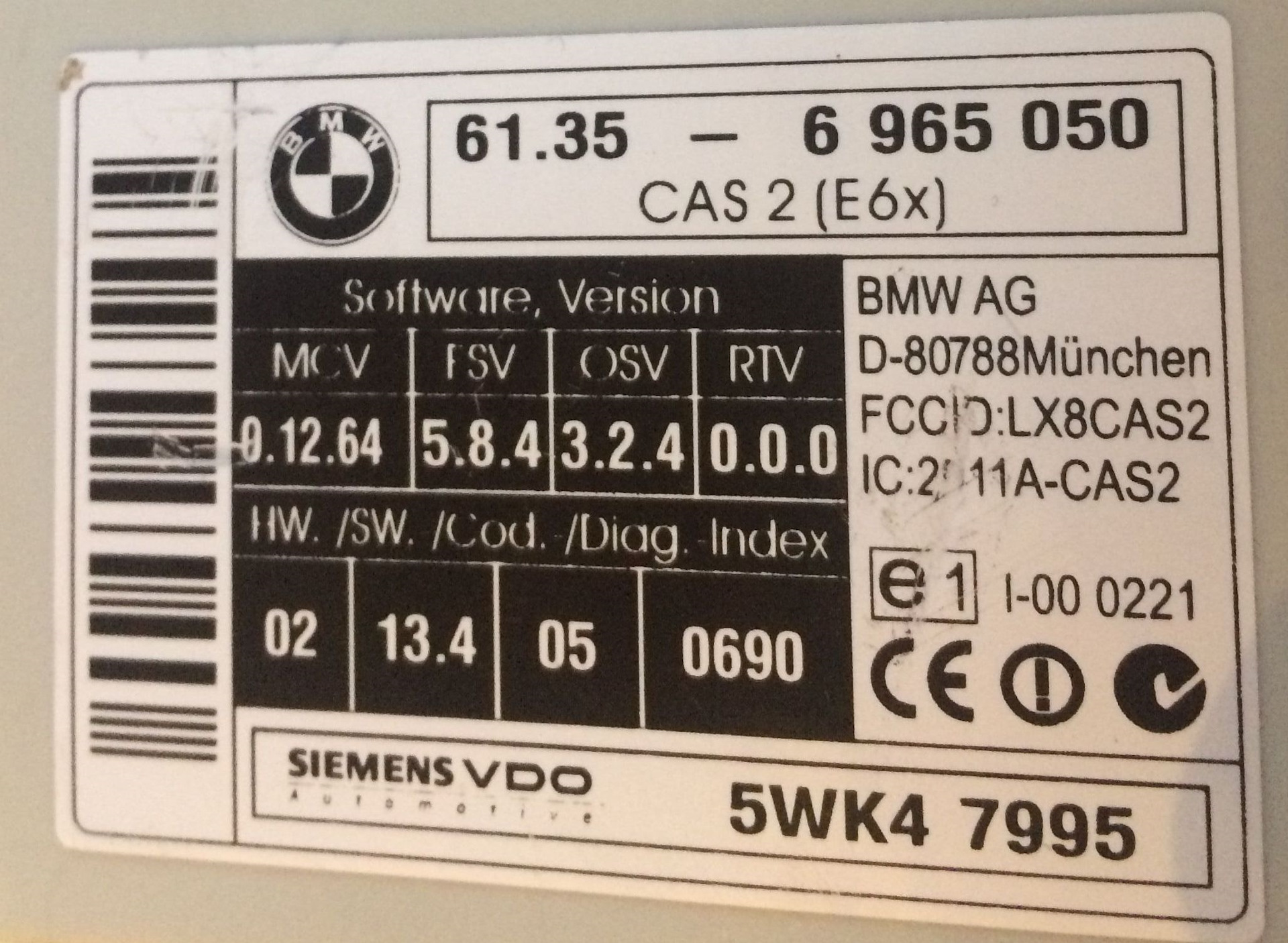 — Блок управления CAS (61 35 6 965 050);