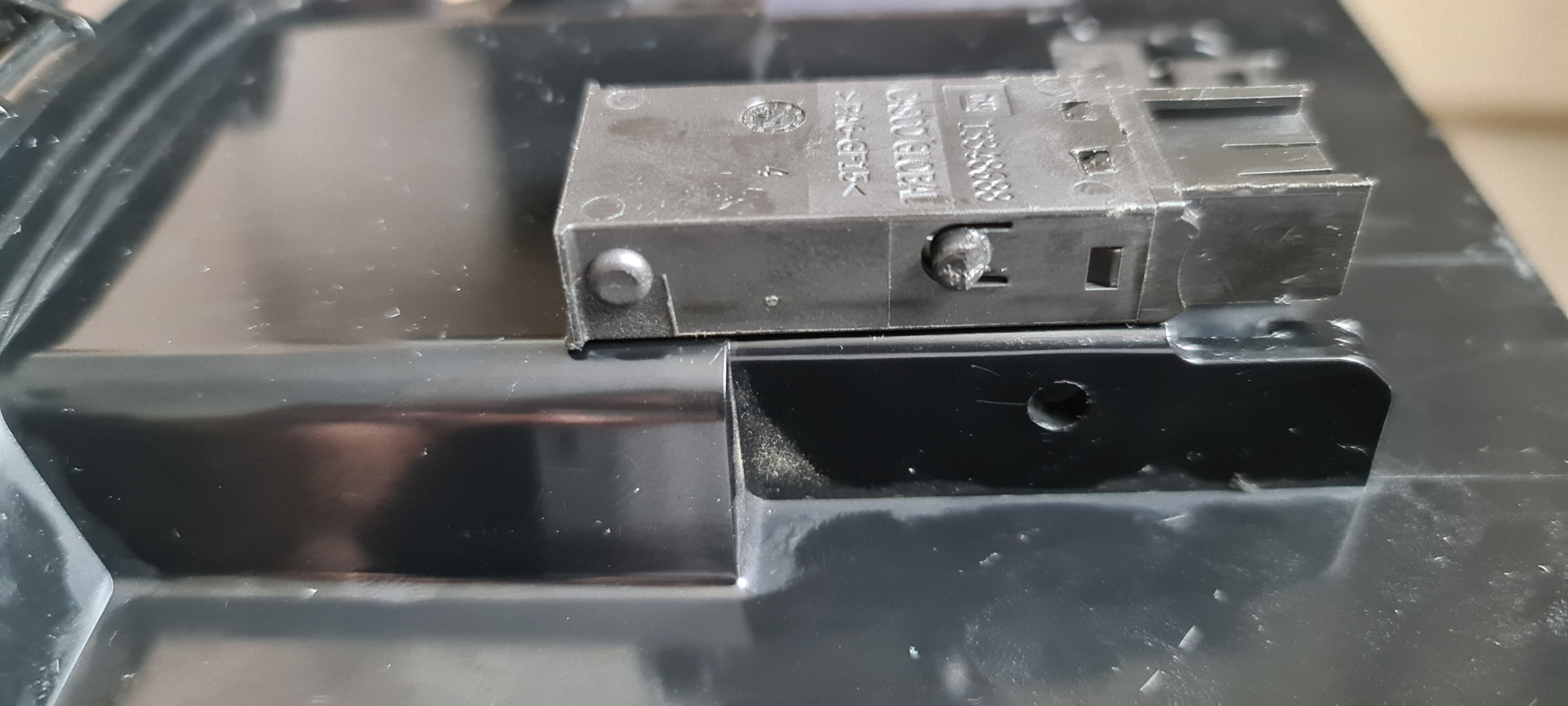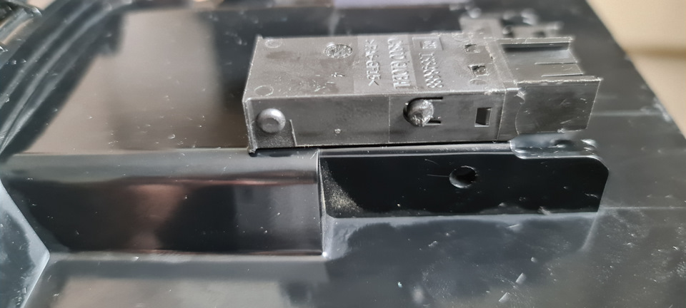 Разьемы, которые шли к модулю PDIM и от него к бардачку (к портам AUX и USB), больше не нужны. Говорят, что можно попробовать аккуратно снять хотя бы провод USB, но он тесно вплетён в общую косу, и я решил просто все четыре разъема аккуратно спрятать в том месте, где стоял модуль мультимедиа, закрепив стяжками. Туда же был поставлен вот этот динамик, предназначение которого нигде не описано: