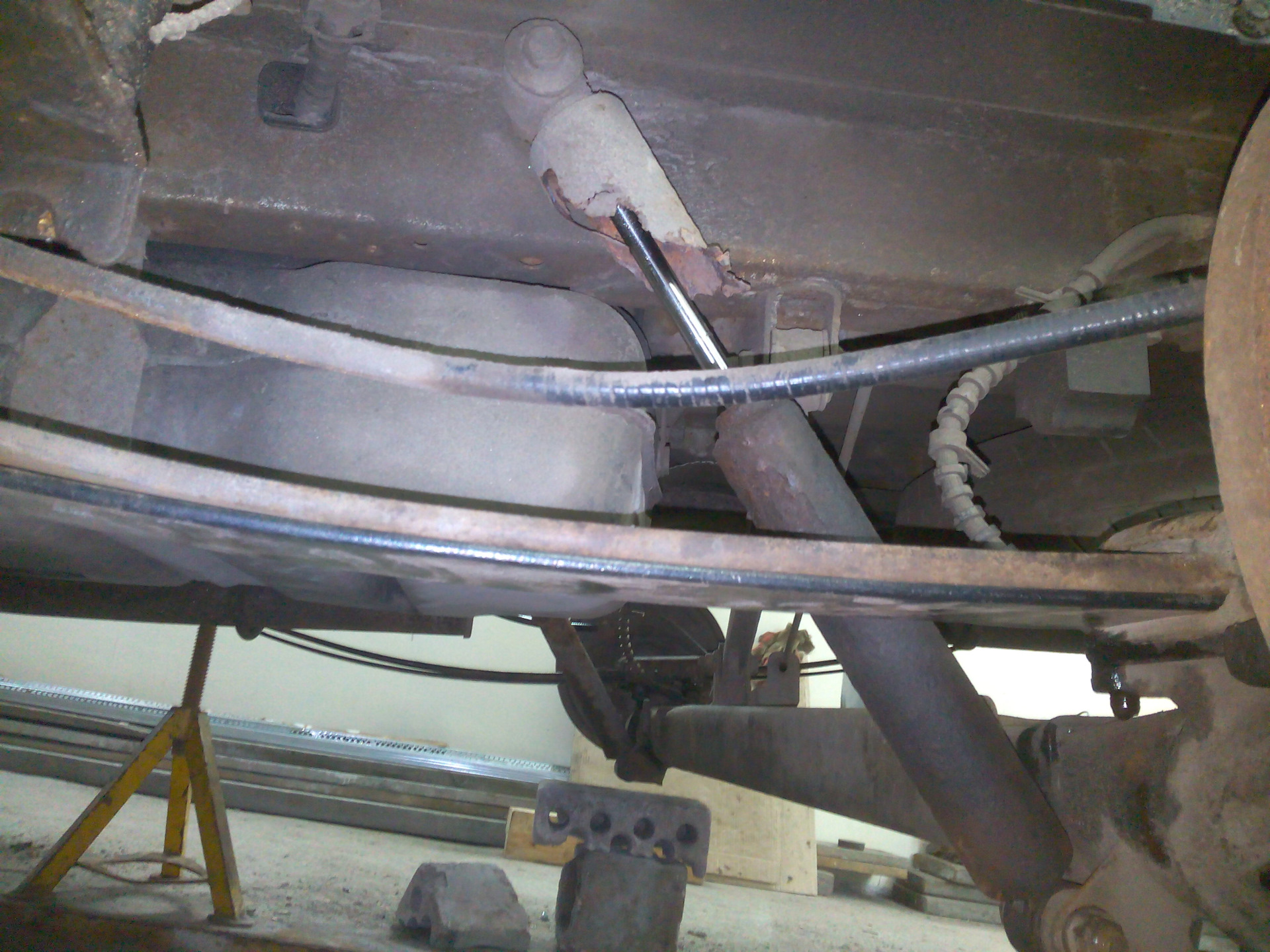 можно увидеть останки такого же тюнинга одним из предыдущих владельцев. одна рессора лопнула и кусок потерялся, вторая треснула по отверстию.
