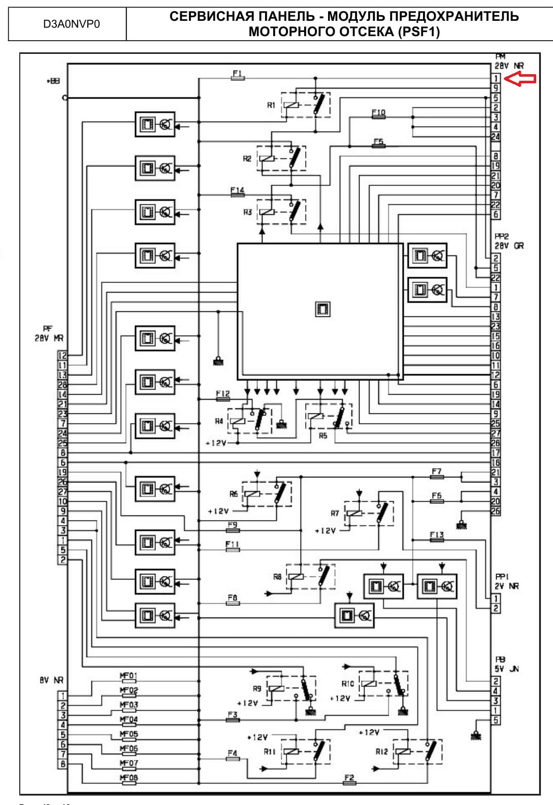 Если с первым пином было сразу понятно, то со вторым возникли вопросы. На второй пин должен подаваться постоянный плюс через предохранитель, посмотрев схему С4 таким предохранителем на блоке PSF оказался F1.