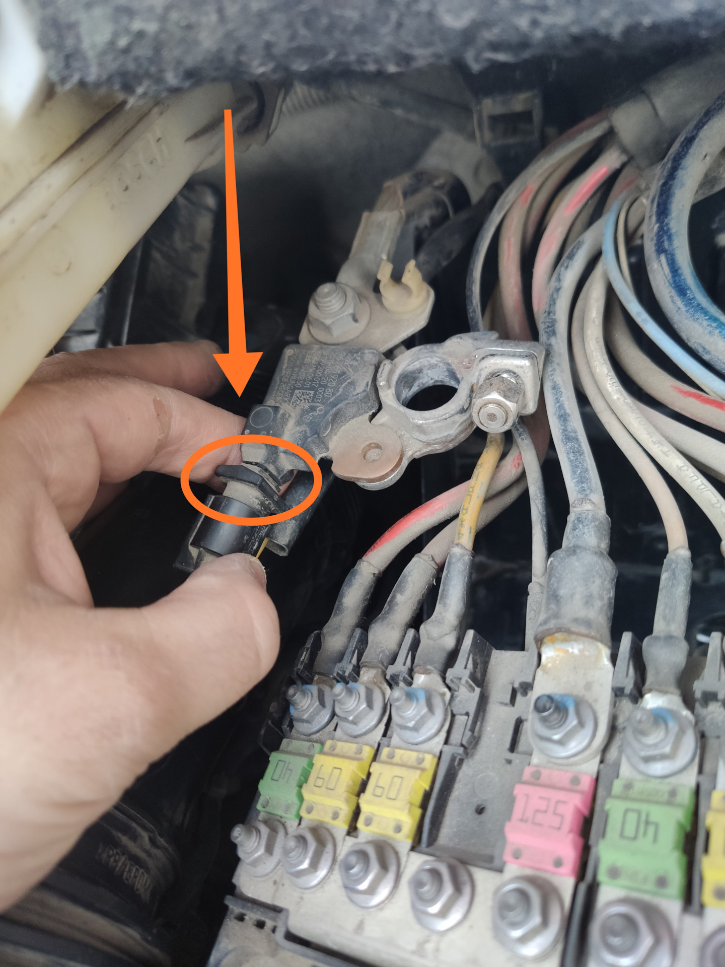 Плюсовой провод (на фото синего цвета) взят был сечением по больше чем для BSI. Колодец под пин был свободен.