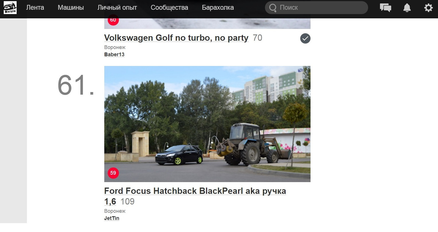 Сегодня посмотрел ТОП в своём городе — 61 место, да не первое, однако тоже результат.