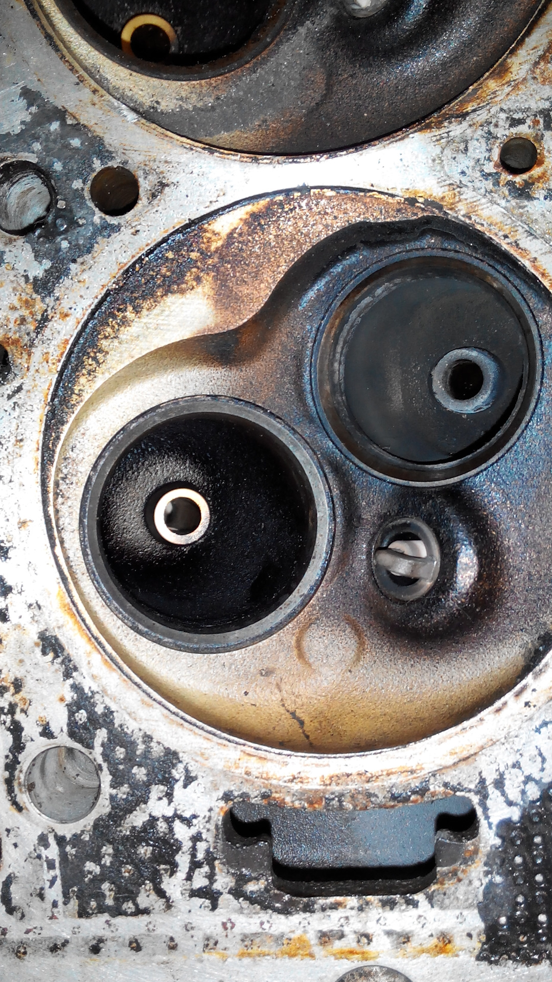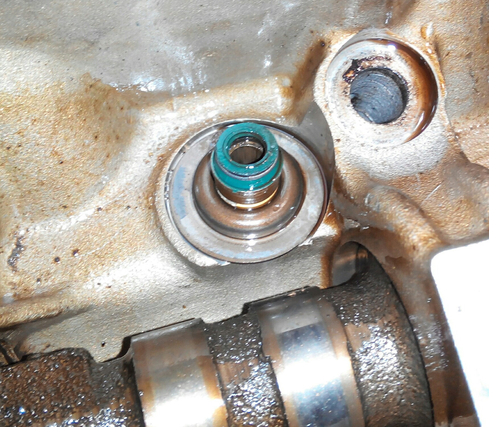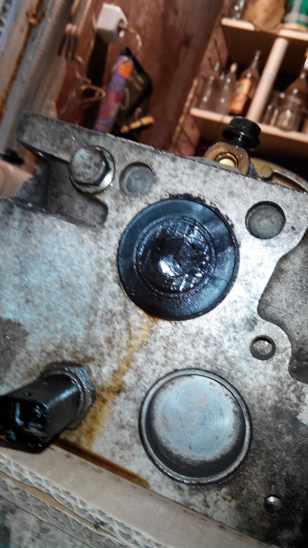 Перевернув бошку проспженных клапанов в седлах не обнаружил. Сидят все правильно. Ещё смутило что зачем то пробита пластиковая заглушка распредвала.