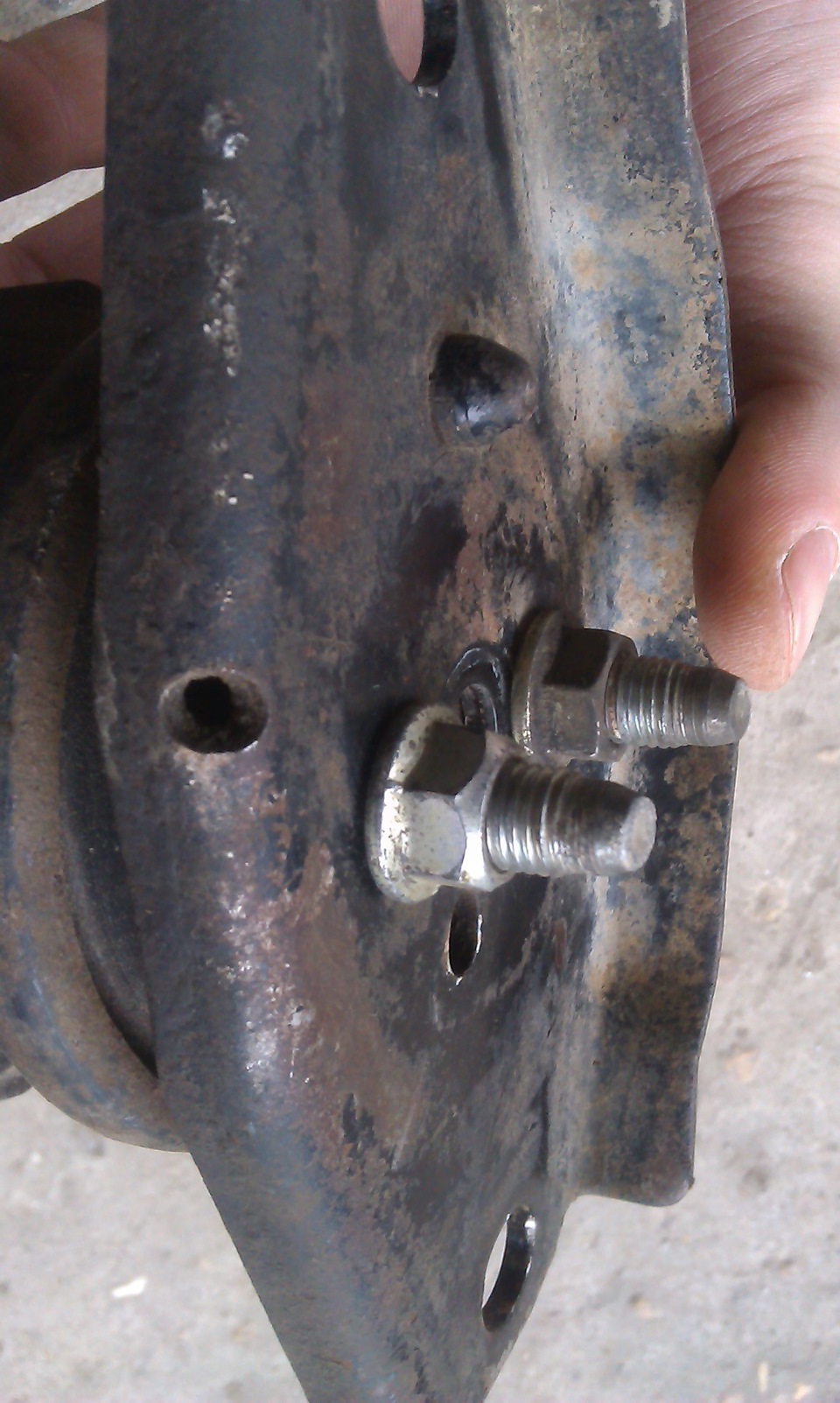 Затем обрезной на балке сделал надрезы там где было отверстие под одну шпильку, чтобы влезли 2 шпильки.