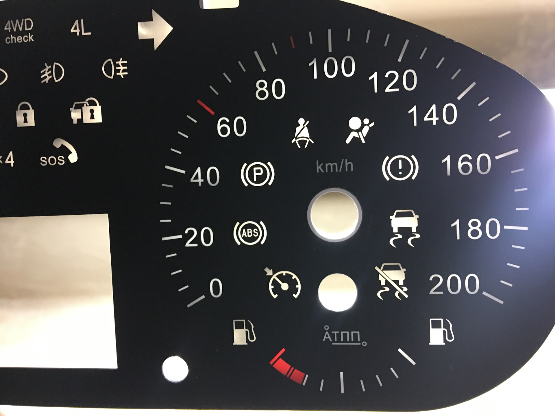 P.S. Последняя фотография иллюстрирует постоянство количества индикаторов на Патриоте. Сделал один — сломал другой в виде тахометра. Причина была проста: когда собирал панель, слишком сильно осадил на оси стрелку, из-за чего она пребывала в заклиненном трафаретом состоянии. Проблема была решена повторной разборкой и кошерной сборкой панели.