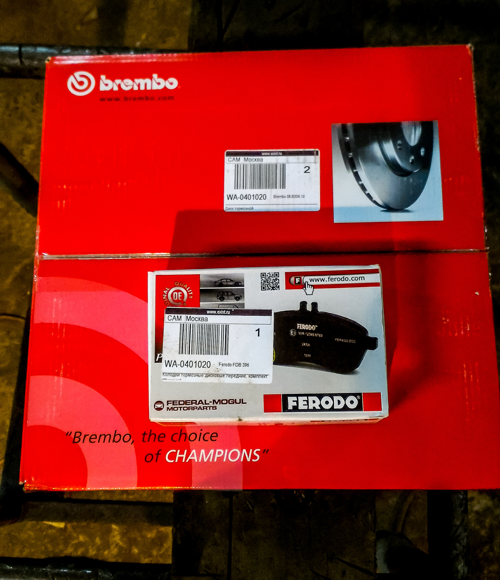 Новая машина всегда содержит в себе неизвестное. Данный экземпляр особо не обслуживался и много стоял. Отчасти подкупило то, что в машине не было колхоза и в нее не влазили шаловливые ручки. Заехал в дружественный сервис на осмотр (бездор ру — не реклама, а хорошие парни с руками и головой, известные мне еще по паджере). Обследование выявило — сильные износ одной колодки, диски в замену и начинающий умирать задний ступичный. И все. Пробег практически 140к, а необходимого вмещательства минимум. Оперативно начал искать диски и колодки. Разнообразие на экзисте повергло в шок — порядка 20 вариантов по дискам и 40-50 заменителей на колодки. Цены — тут совсем все не понятно — разница от 5 до 10 раз относительно оригинала. В итоге выбор пал на диски Brembo и колодки Ferodo.