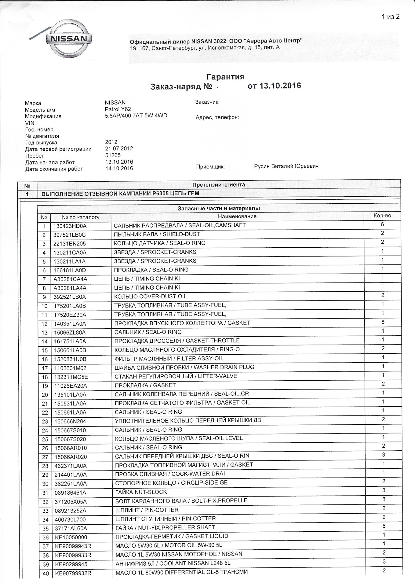 Хоть замечаний и небыло, сделал отзывную по ГРМ.