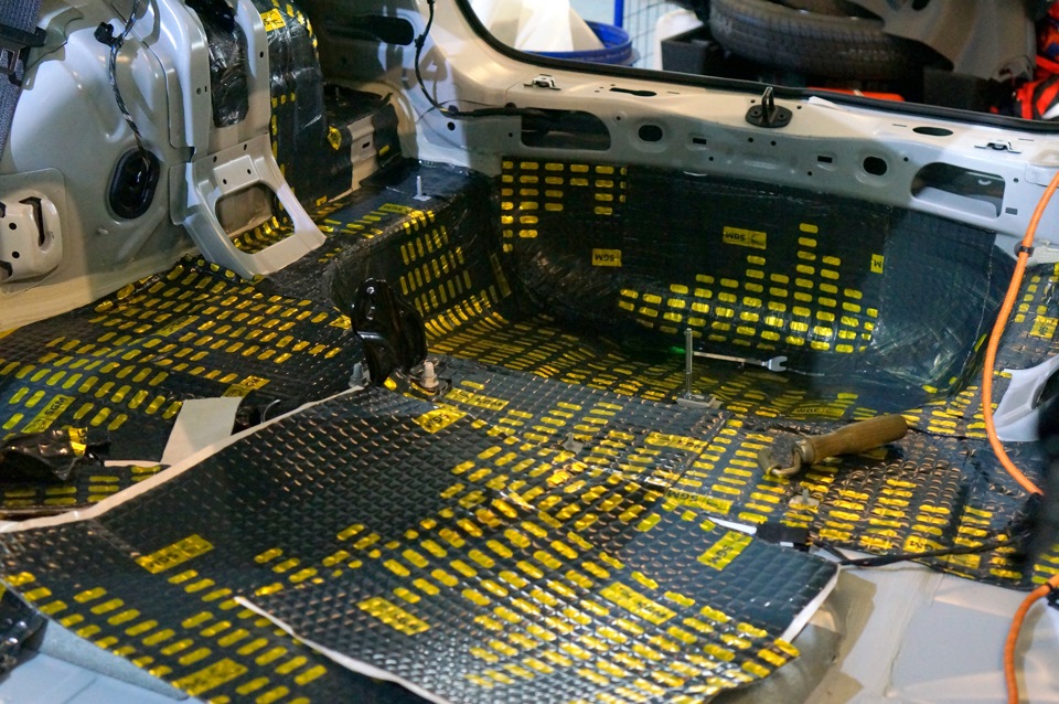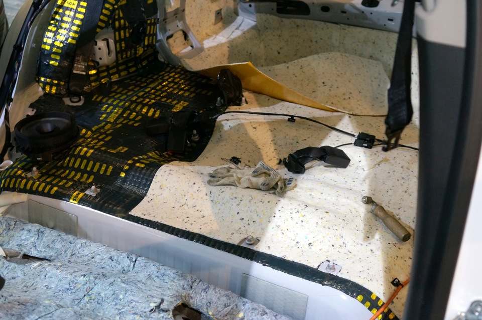 Пока потолок-двери-капот, то отдельный человек работал с багажником: были проложены изолирующим и войлочным материалом полости за фонарями, далее пол по такой же сэндвичной схеме.