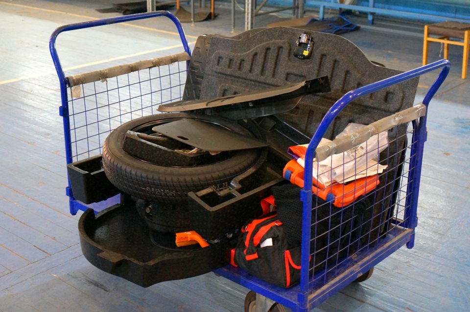 Опустошили багажник. Мелкие детали и крепления в отдельную коробку. Так по каждой части разбора. Порядок должен быть на рабочем месте.