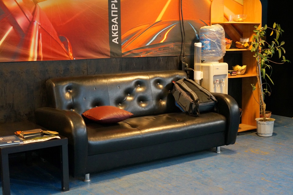 Сам я поместился в зоне отдыха. Диван на семь часов. Хотя на нем я провел только пару часов интернета, фильмов и кофе-чая, остальное время ходил вокруг да около машины.
