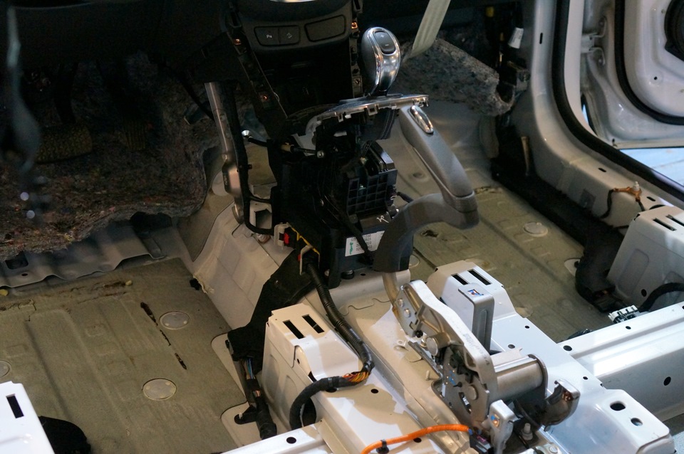 Так грустно выглядит пол под передними сиденьями. Почти голый металл. Наклеечка родного материала тоненькая-тоненькая.
