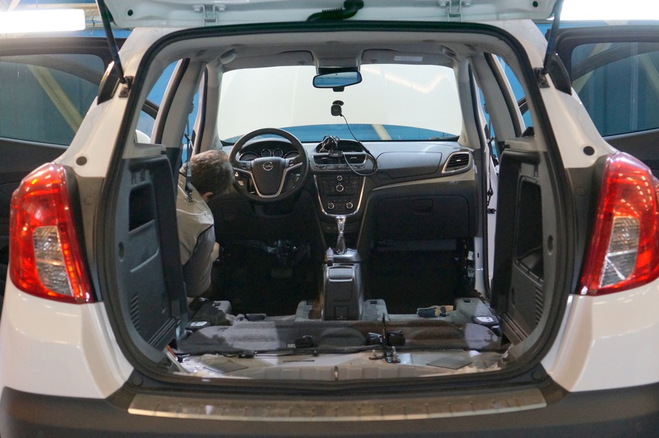 с сайта: Шумоизоляция Opel Mokka включает капот, 4 двери, потолок, пол и колесные арки, багажник, задние крылья, крышка багажника.