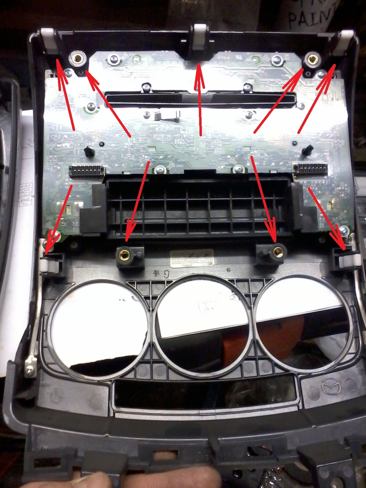 Я уже раз пять-шесть разбирал центральную консоль. Не понял о каких 2 саморезах речь (не о тех ли, что на девятом фото, показаны красными стрелочками?)