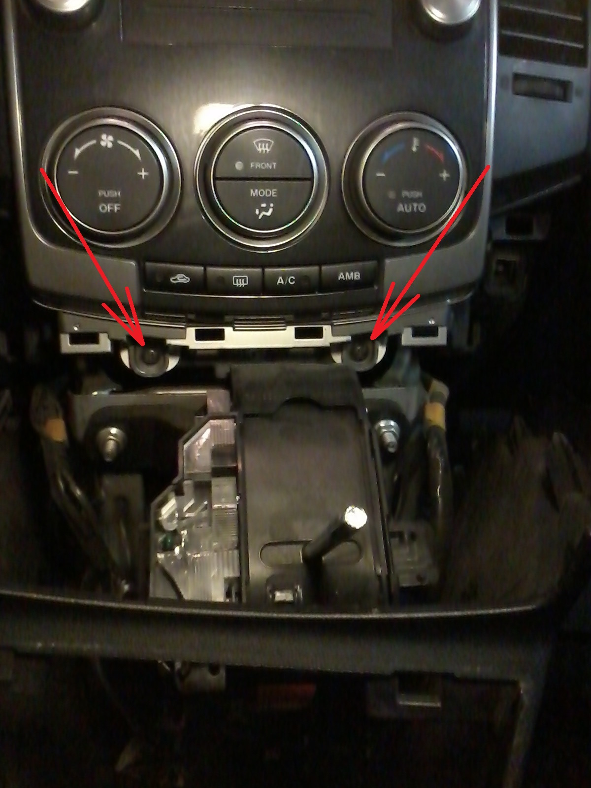У меня до сих пор 2 нижних самореза, которые у ступней водителя и пассажира, не прикручены, что бы можно было за пару минут все разобрать и вытащить магнитолу. Весь пластик просто сдергивается. Саморезы под крутилками климата выкручиваются после снятия подиума, они его не держат.