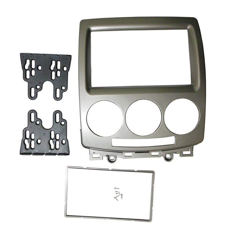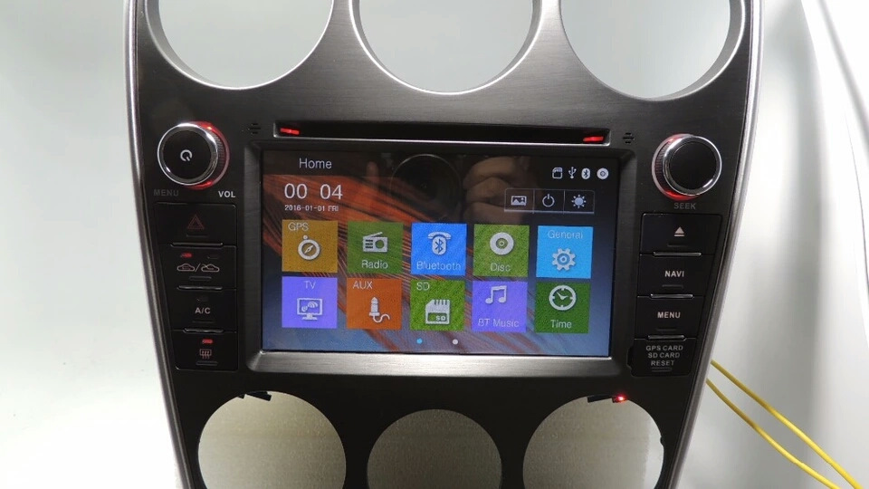 Металлический кронштейн от родной магнитолы можно и перевернуть и тогда он подойдет по креплениям ко втулкам к панели. Но китайская магнитола имеет утолщение в районе экрана. Поэтому без ножовки по металлу и напильника (естественно в отношении металлического кронштейна) магнитолу к китайской панельке маздовским металлическим кронштейном не прикрепить.