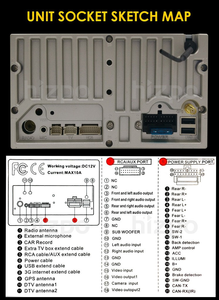 Вот задняя панель и распиновка разъема китайской магнитолы: