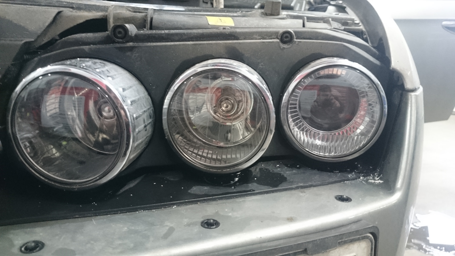 "Колодцы", в целом, были в весьма неплохом состоянии, но для полноты феншуя и успокоение внутреннего червячка по данному вопросу, было принято решение слегка полирнуть оптику и наклеить бронировочную плёнку. ПТФ не трогали т.к. стекло достаточно посечено и полировать долго, т.е. либо оставлять машину им на пару дней либо снимать ПТФ и оставлять. Как вариант просто купить новые ПТФ.