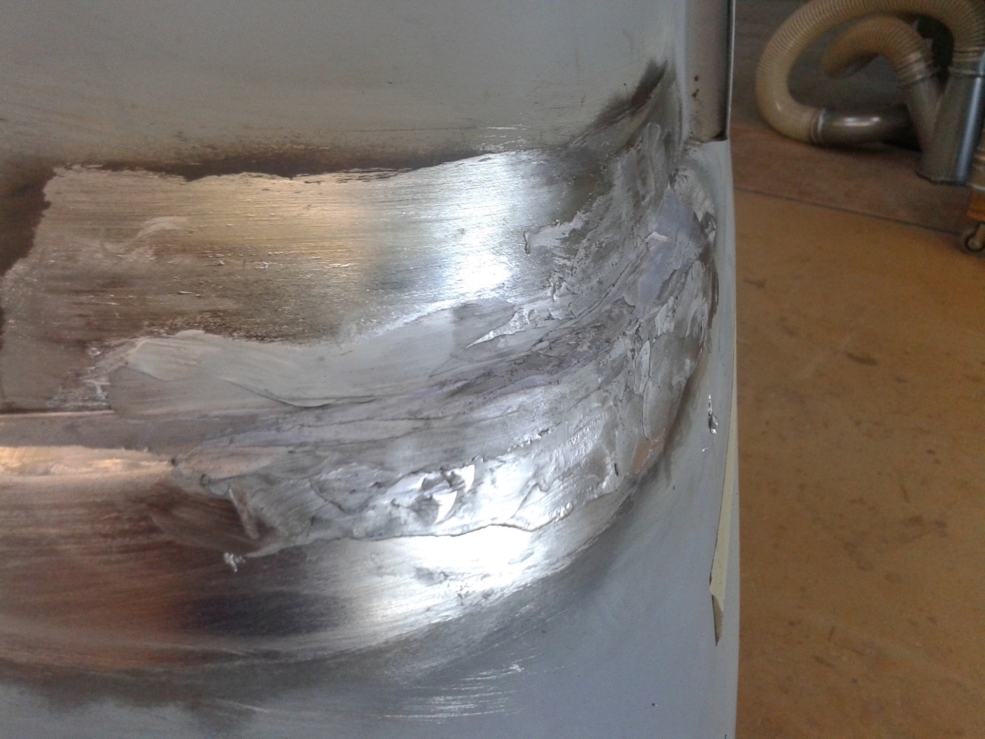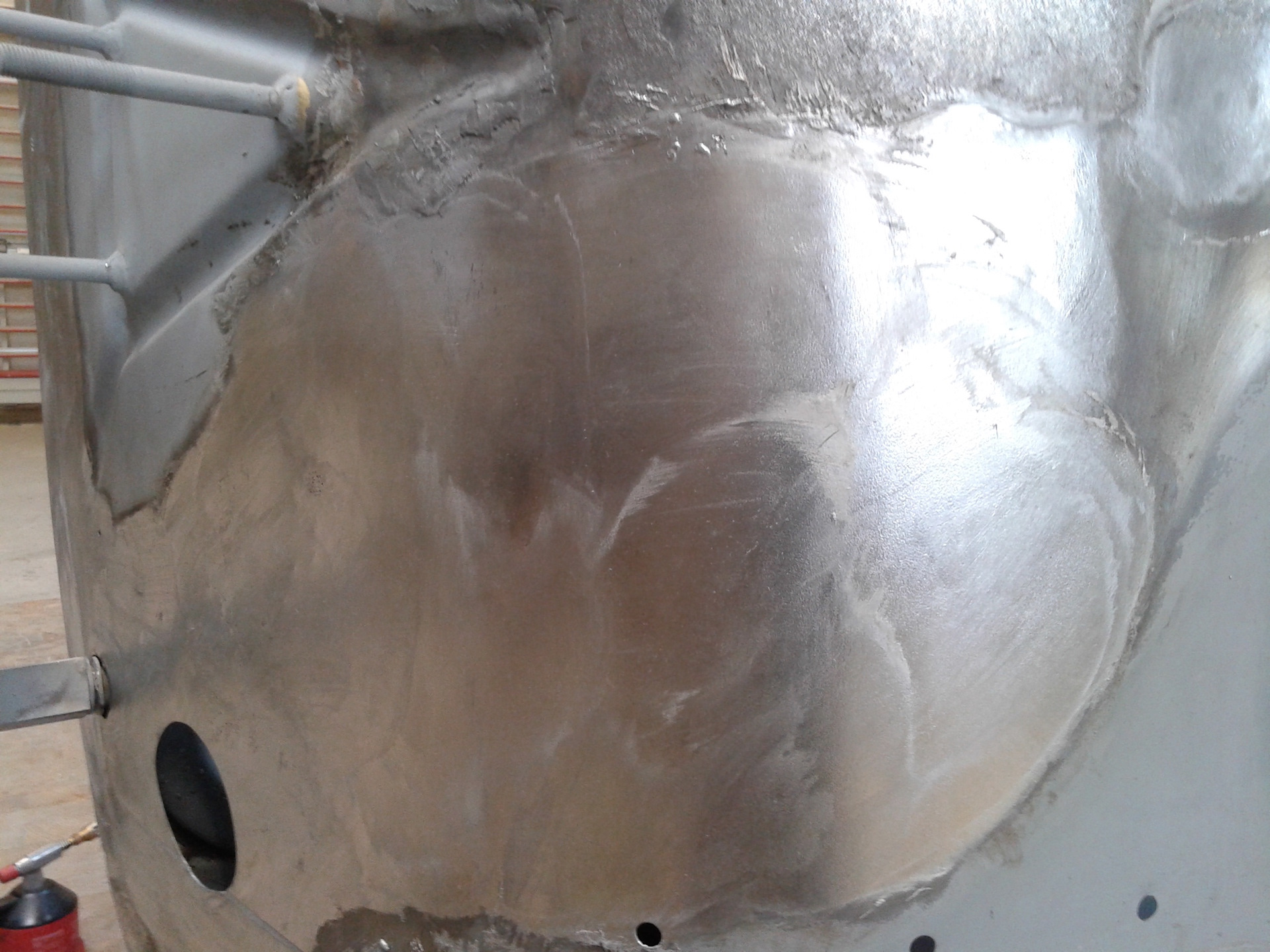 После полной зачистки конечно есть раковинки и маленькие ямочки, но это уже не страшно — шпакля ляжет не на металл…